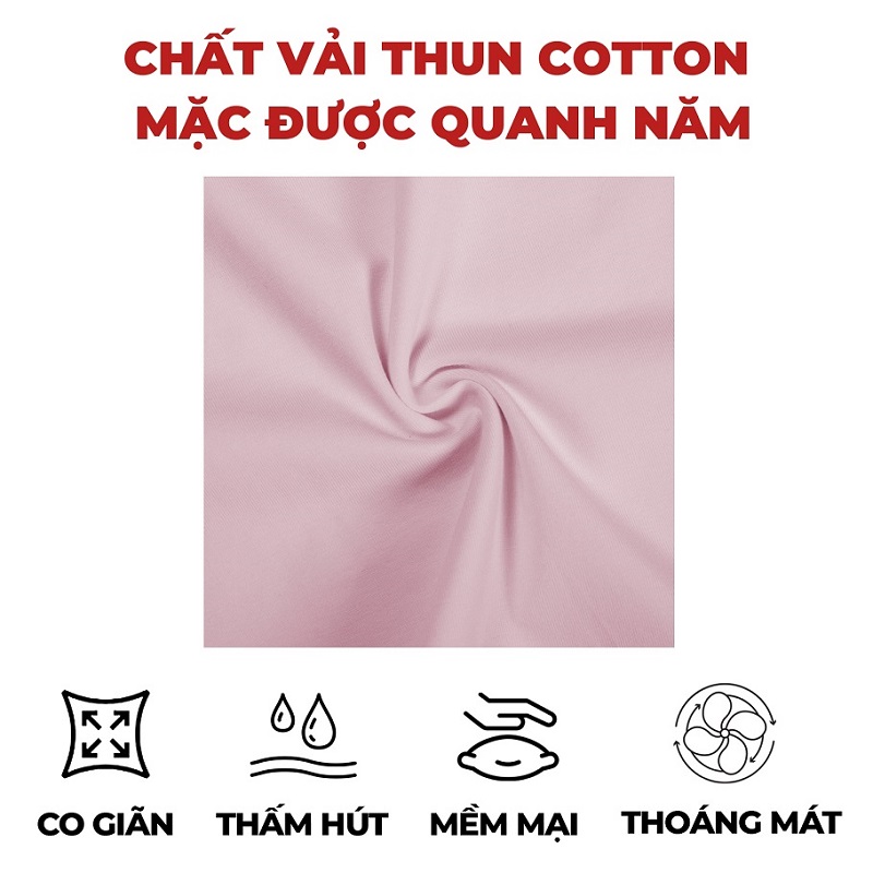 Chất thun cotton thoáng mát, với độ co giãn linh hoạt tạo cảm giác thoải mái khi mang. Chất vải mềm mịn, thấm hút mồ hôi tốt và nhanh khô khi phơi