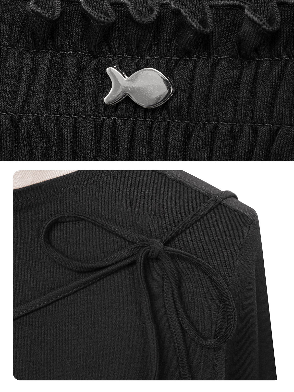 Điểm nhấn đắt giá nhất làm nên sự điệu đà chính là chi tiết thân áo phối chun nhún mềm mại kết hợp cùng dây thắt nơ chéo vai vô cùng lạ mắt, khiến diện mạo của bé trở nên e ấp và thu hút hơn bao giờ hết.
