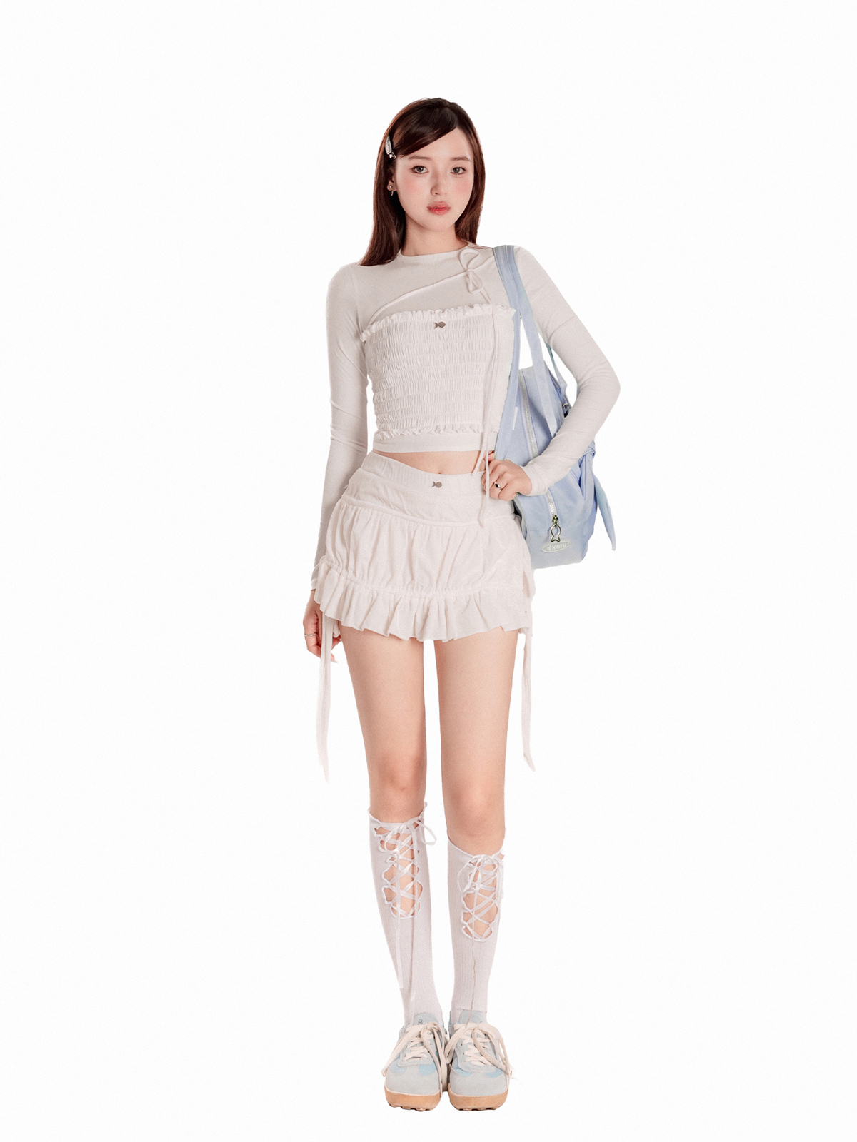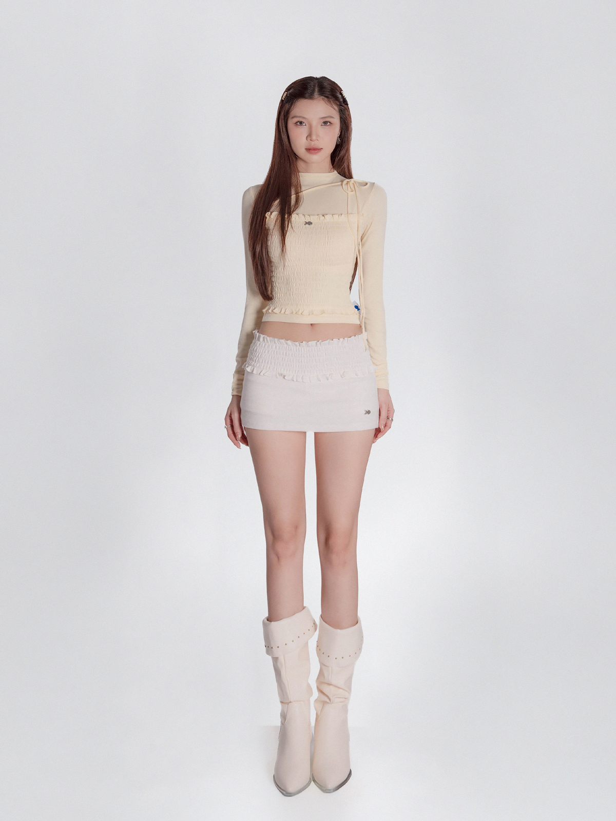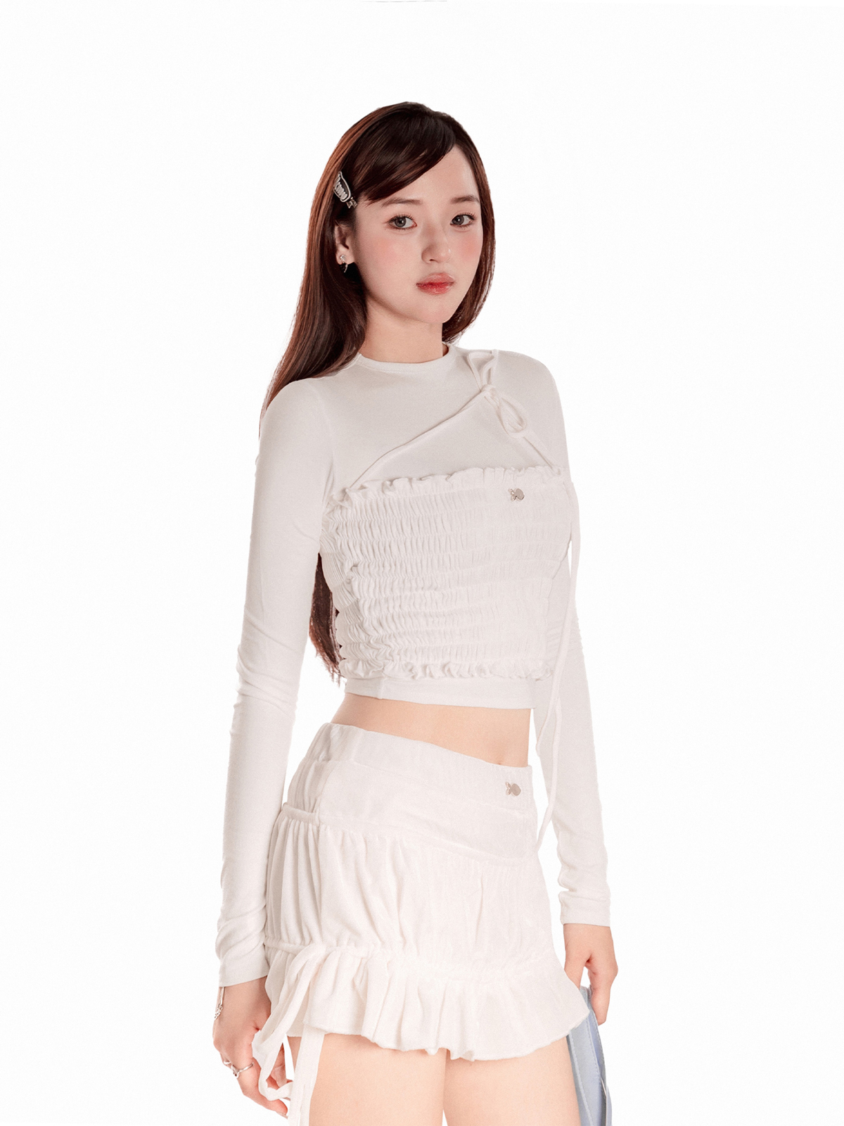 Với thiết kế dài tay thanh thoát phối cùng dáng croptop ôm dáng, chiếc áo khéo léo giúp bé khoe trọn vòng eo nhỏ nhắn và vóc dáng duyên dáng một cách đầy kiêu kỳ.