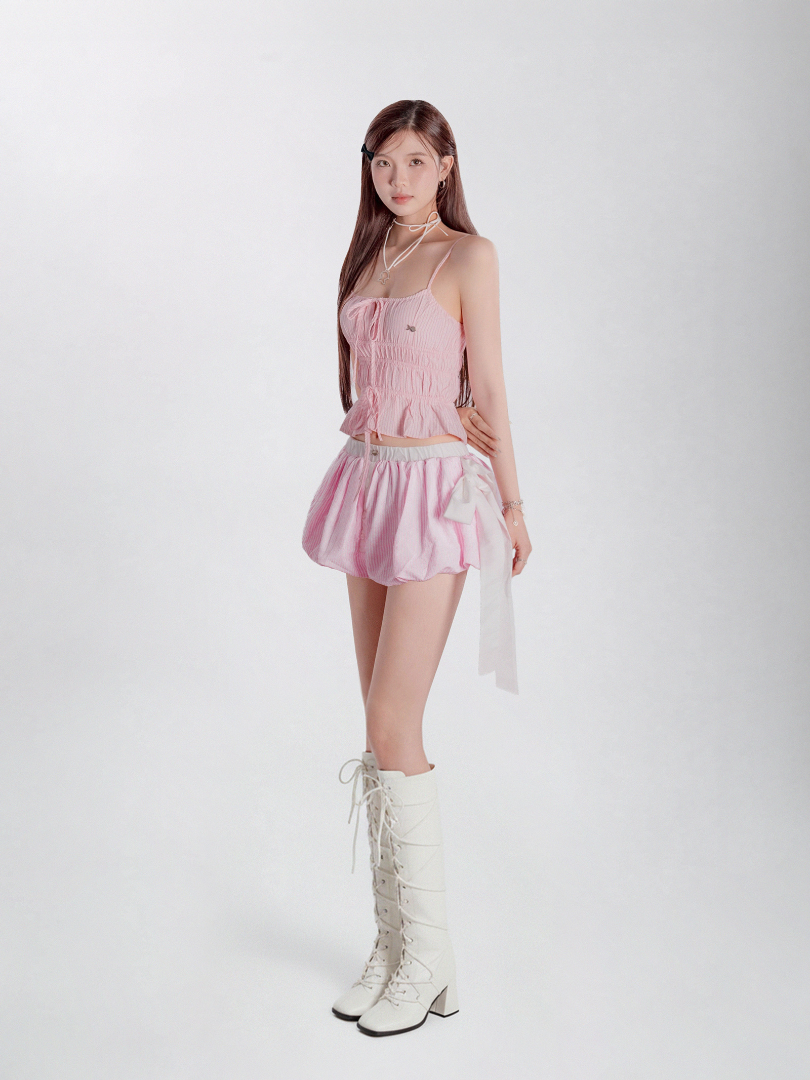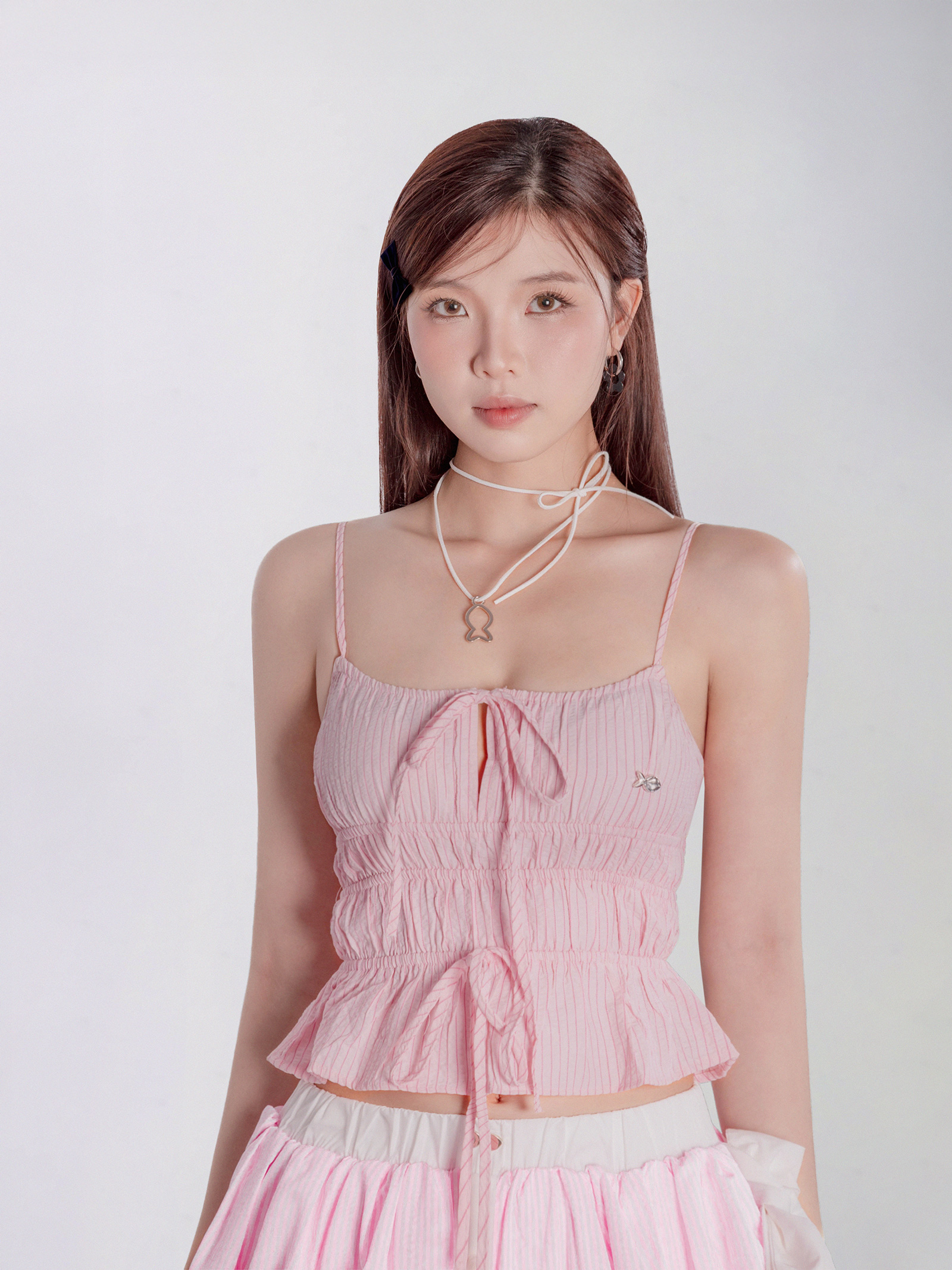 Myrna Top có thiết kế áo hai dây mảnh mai, nhẹ nhàng khoe bờ vai nhỏ xinh của bé. Điểm đặc biệt là phần nhún eo duyên dáng, tạo phom dáng bồng bềnh và thoải mái, kèm chiếc nơ nhỏ xinh được thắt khéo léo, tô điểm thêm nét điệu đà, ngọt ngào cho bé.