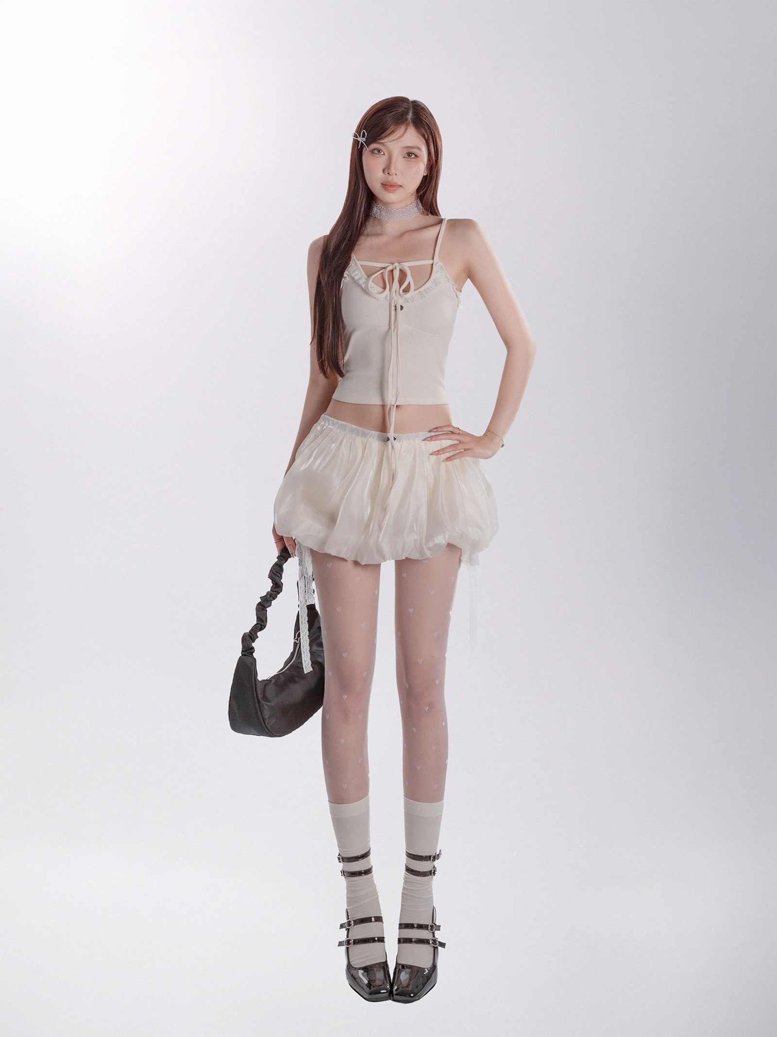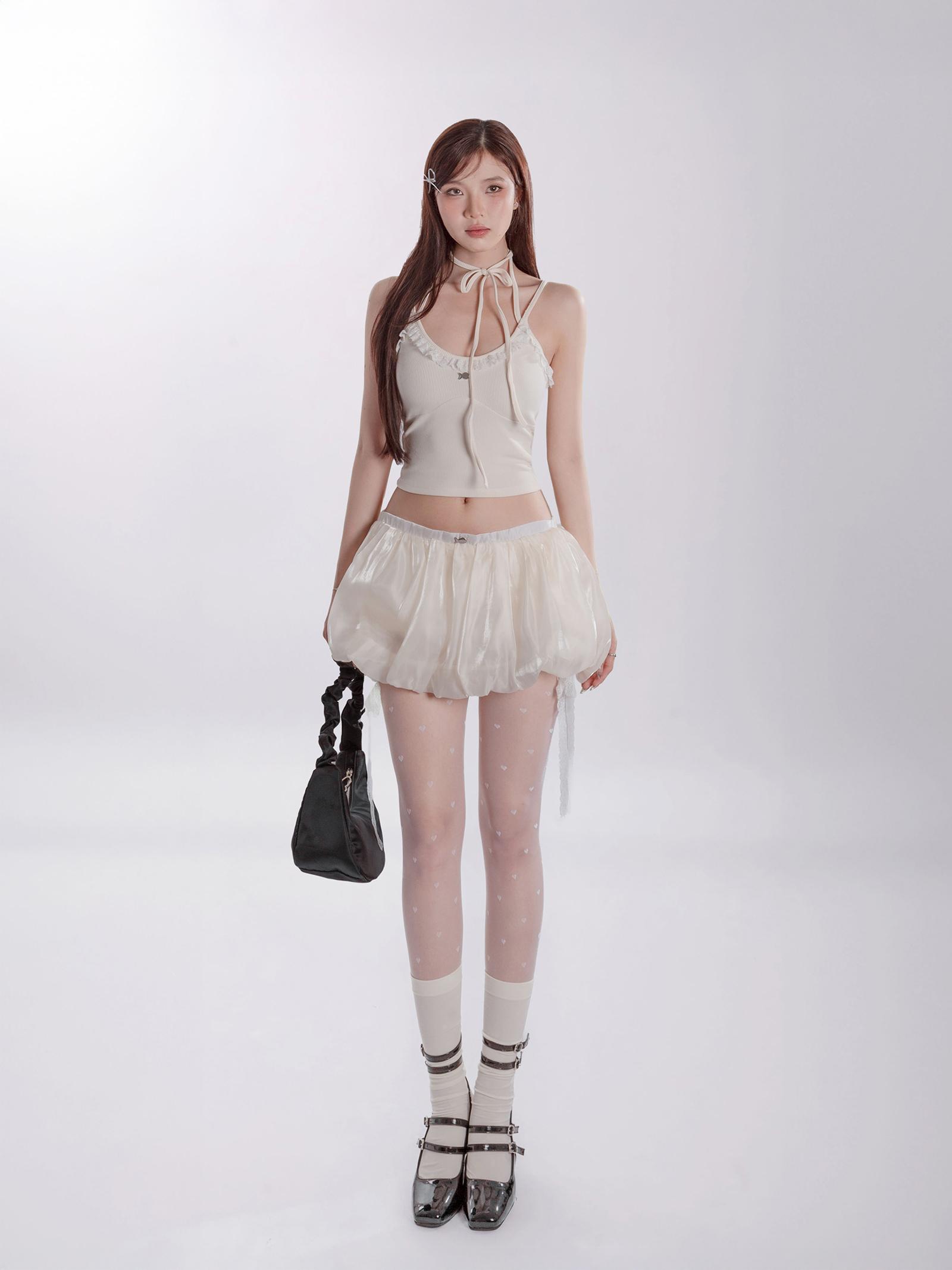 Bambi Top hiện có hai gam màu ngọt ngào và dễ thương: trắng tinh khôi và kem ấm áp. Sắc trắng mang đến vẻ đẹp thuần khiết, trong trẻo, trong khi sắc kem lại gợi lên cảm giác dịu dàng, ấm áp.