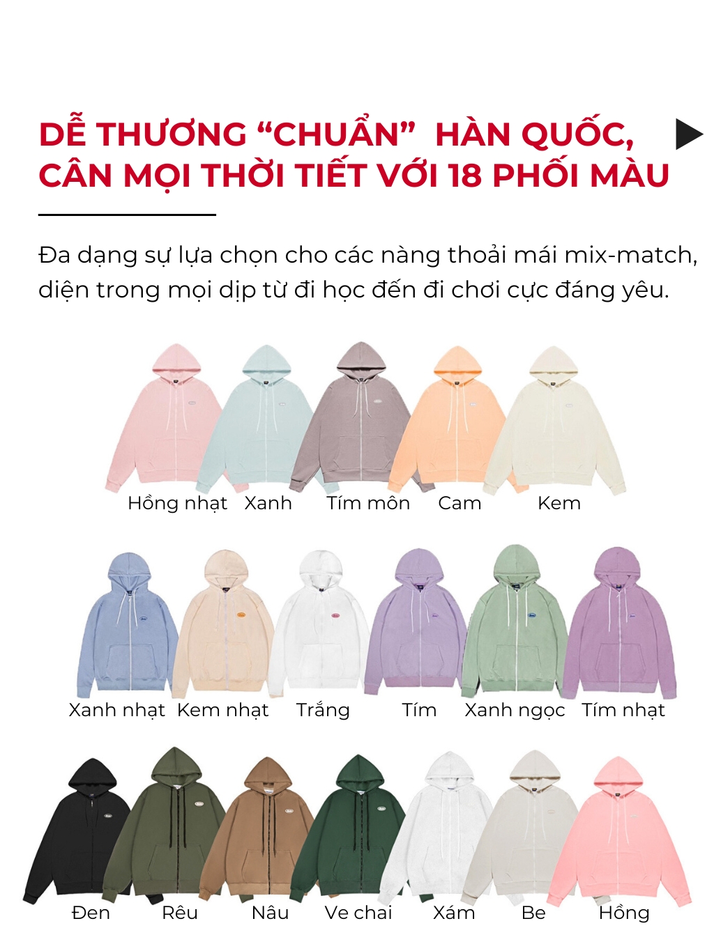 Tên sản phẩm : Áo khoác nữ K11-AK2 Hoodie Zip Rubber Tag