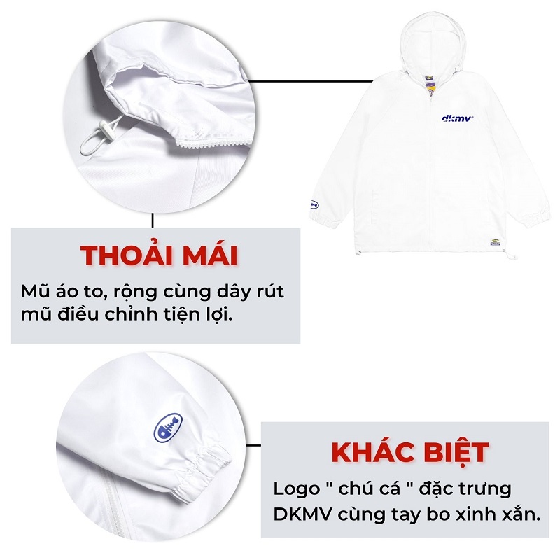 - Kế thừa thiết kế độc đáo trong phiên bản áo thun trước đó, DKMV đã tái hiện theo một cảm hứng mới vào trong áo khoác dù.