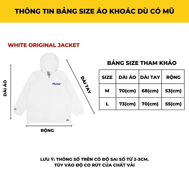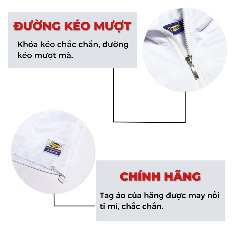 - Chất liệu: Vài dù mero cán mờ, thoáng mát tạo cảm giác thoải mái khi khoác lên mình mẫu áo khoác dù nữ local brand màu trắng Original Jacket.