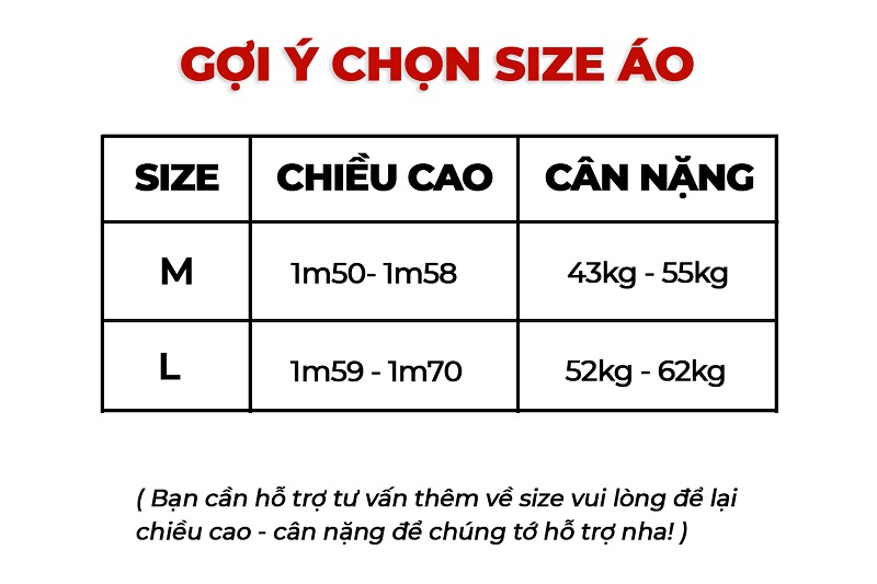 L: Dài áo 73cm - Dài tay 70cm - Rộng 55cm