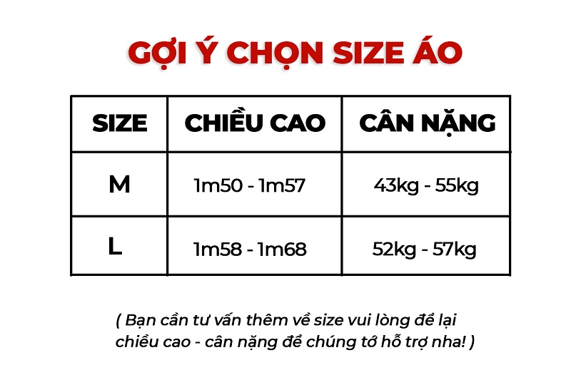 M: Dài áo 50cm - Dài tay 48cm - Rộng 57cm