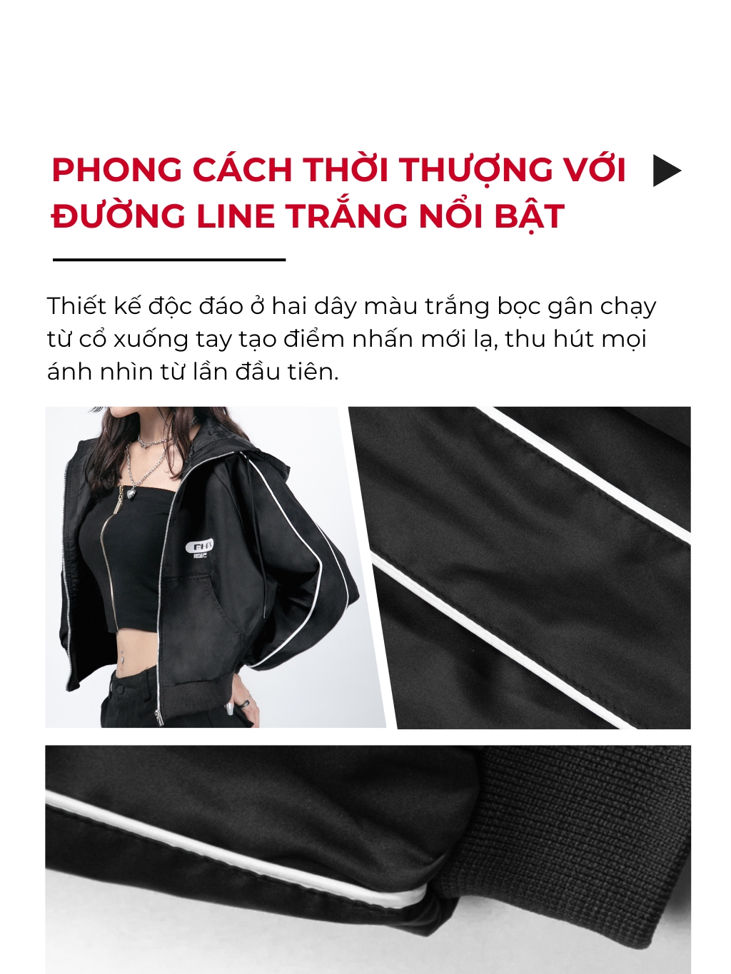 Một chi tiết độc đáo khác của áo khoác này là hai dây màu trắng bọc gân chạy từ cổ xuống tay. Điều này không chỉ tạo ra một điểm nhấn thú vị trên áo mà còn mang lại vẻ đẹp rất “riêng” cho sản phẩm. Đây là một chi tiết nhỏ nhưng đủ để làm nổi bật phong cách riêng của bạn.
