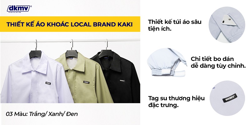 - Áo khoác Local Brand Kaki trắng gồm 2 lớp: Vải kaki bên ngoài và được lót thêm vải dù bên trong.
