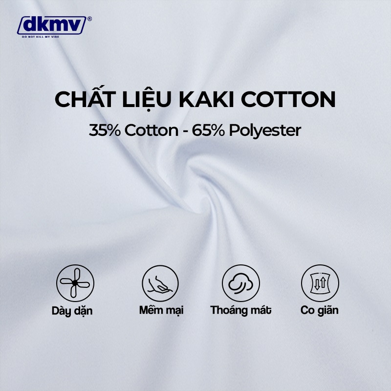 - Chất liệu: vải kaki cotton từ sợi cotton nguyên bản, với đặc tính thông thoáng, thấm hút mồ hôi nhanh, phù hợp với mọi thời tiết.