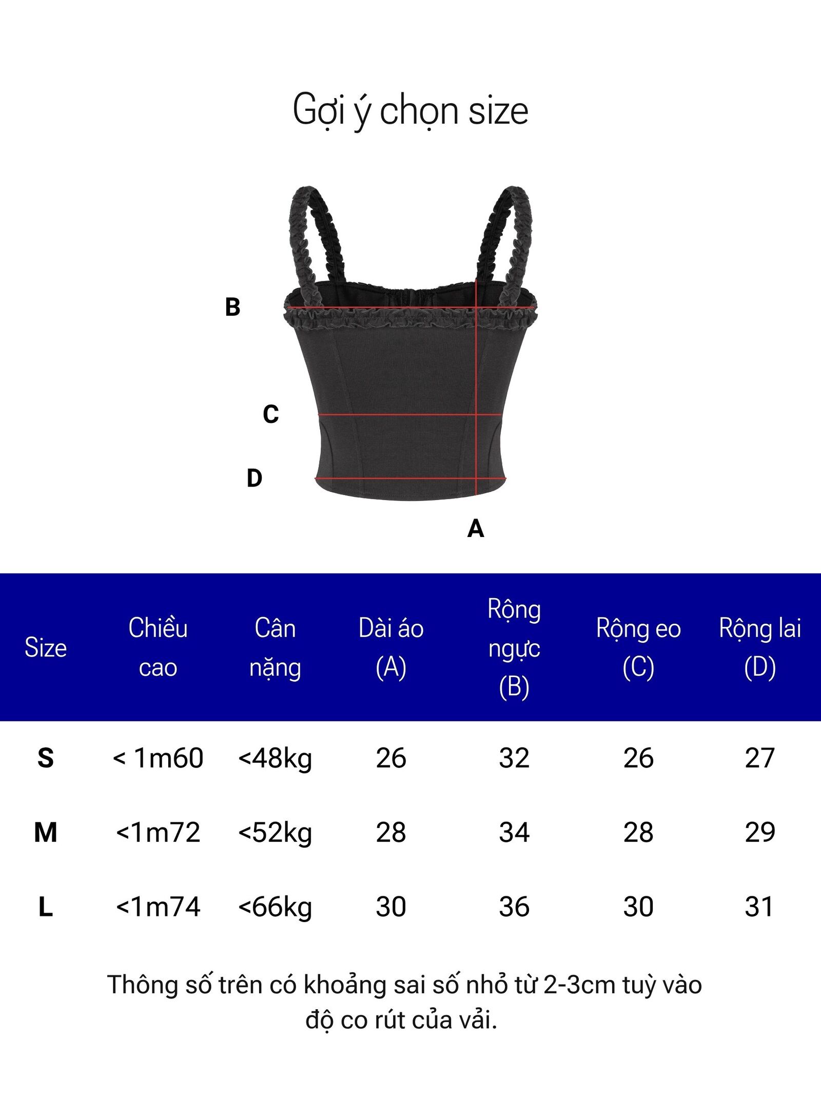 Size | Dài áo | Rộng ngực | Rộng eo | Rộng lai |