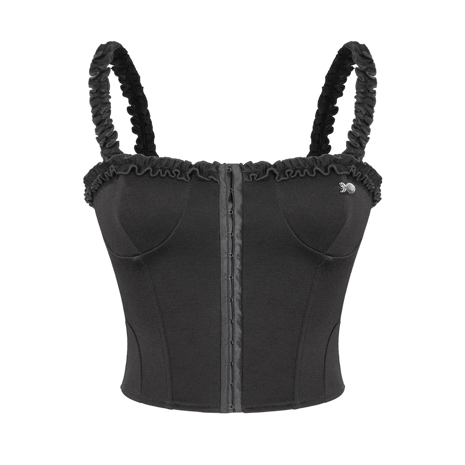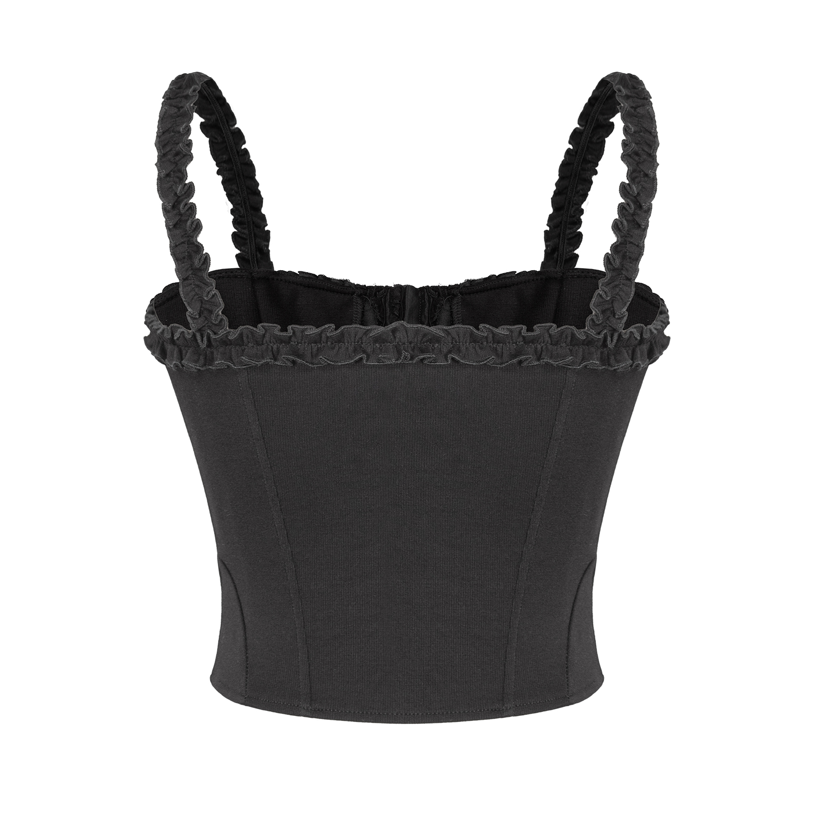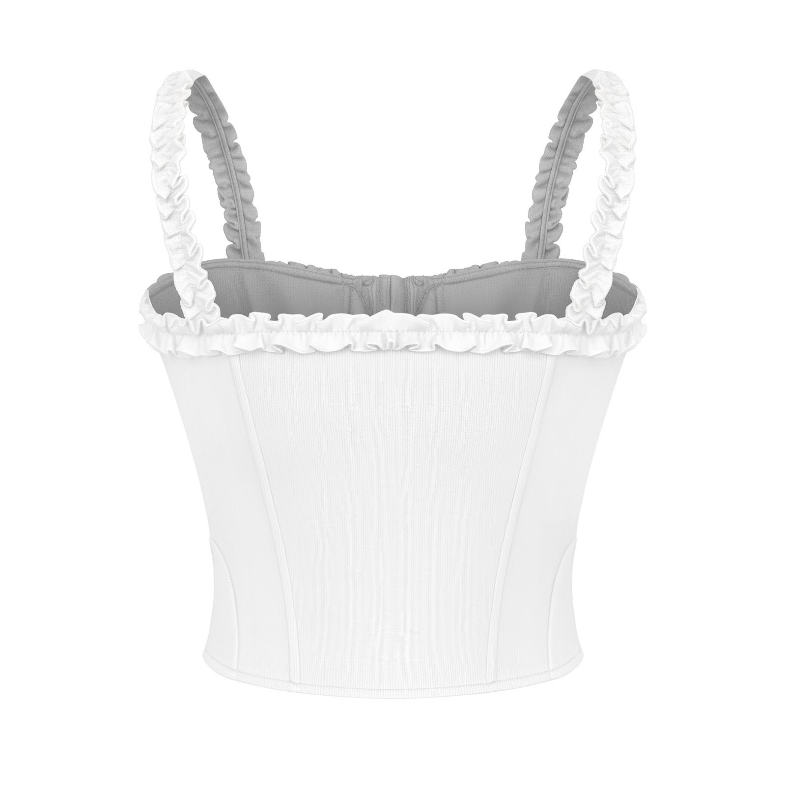 Yumi Top gây ấn tượng với kiểu dáng croptop hiện đại, kết hợp chi tiết hai dây với quai áo phối bèo mềm mại. Thiết kế corset cùng viền cúp ngực gợi cảm giác kiêu sa, giúp tôn lên vóc dáng thon gọn của bé một cách tinh tế.