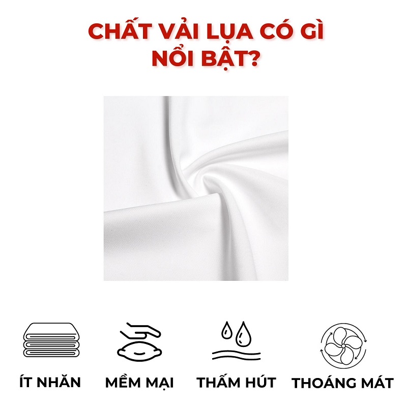 - Chất liệu: lụa mềm mại, thoáng mát, thấm hút mồi hôi cực tốt, phù hợp mọi thời tiết