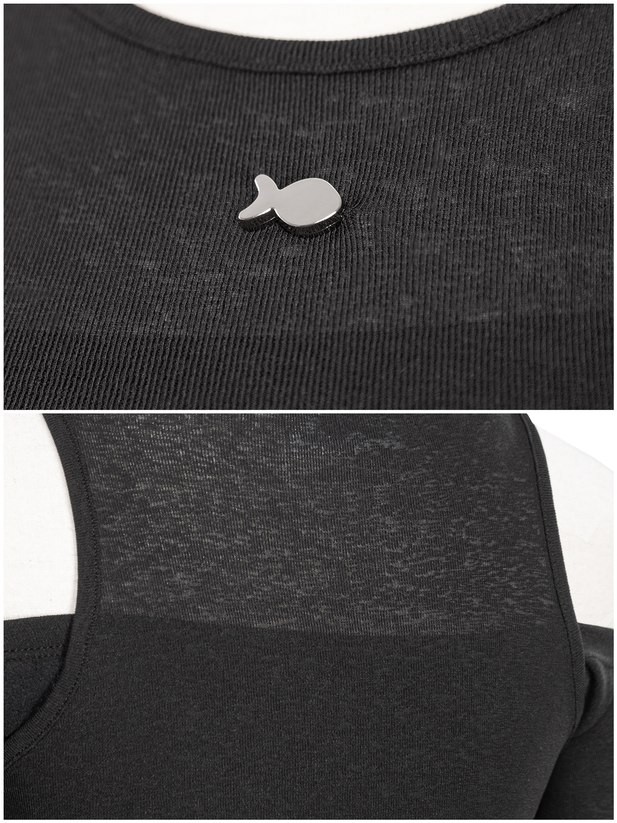Điểm xuyết trên sắc trắng dịu dàng là chiếc logo cá inox sáng bóng, biểu tượng cho sự sang xịn và phong cách đáng yêu không thể trộn lẫn của DKMV.