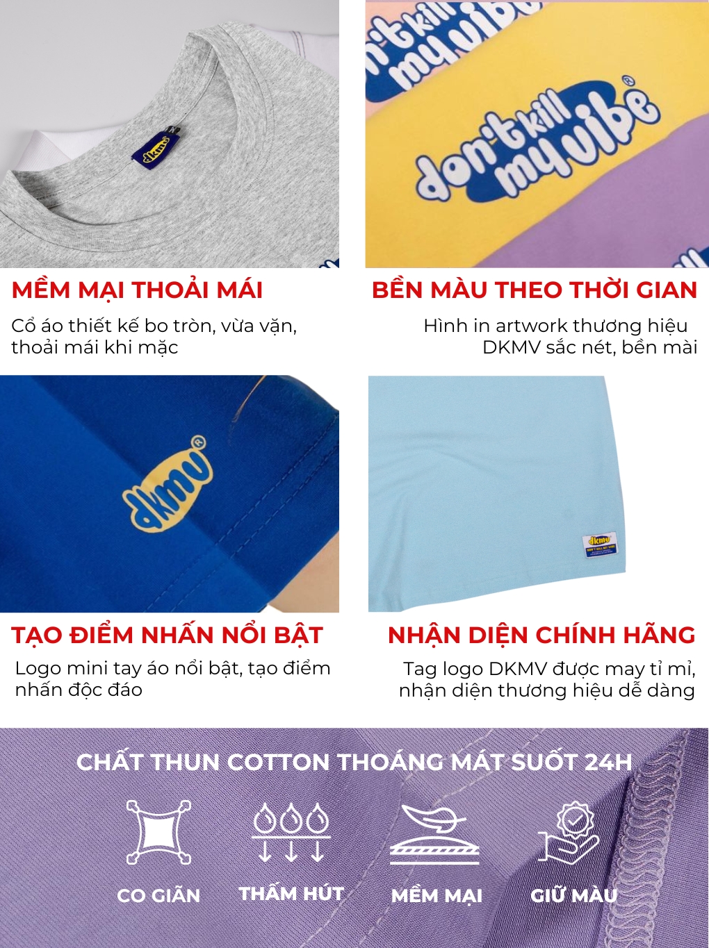 - Áo thun basic nữ local brand chính hãng Don't Kill My Vibe được thiết kế bởi Artwork độc đáo và tiên tiến trong sản xuất, chất liệu thun 100% cotton, co dãn 4 chiều mềm mịn cũng như in lụa cho lên màu sắc nét.