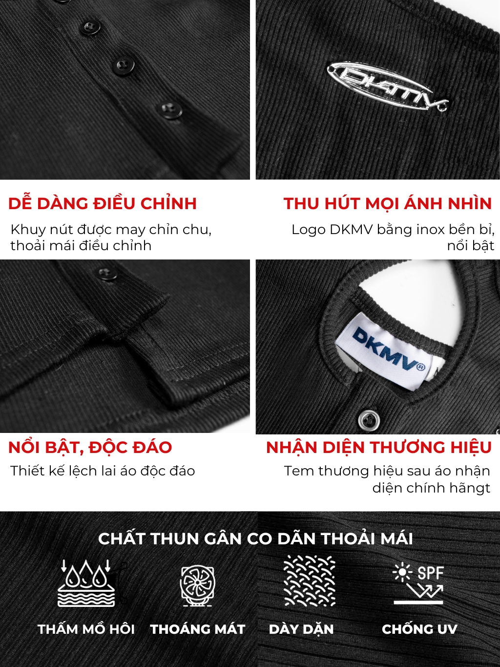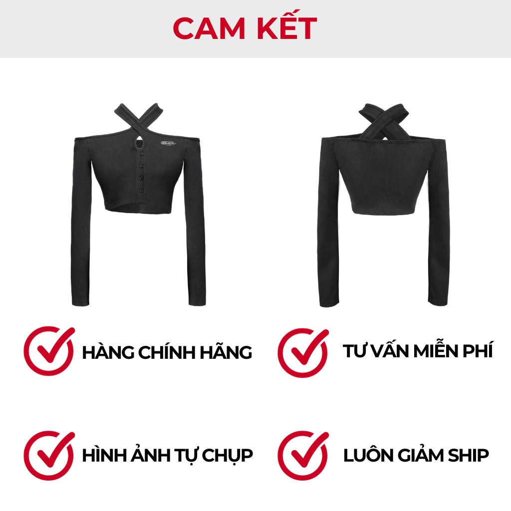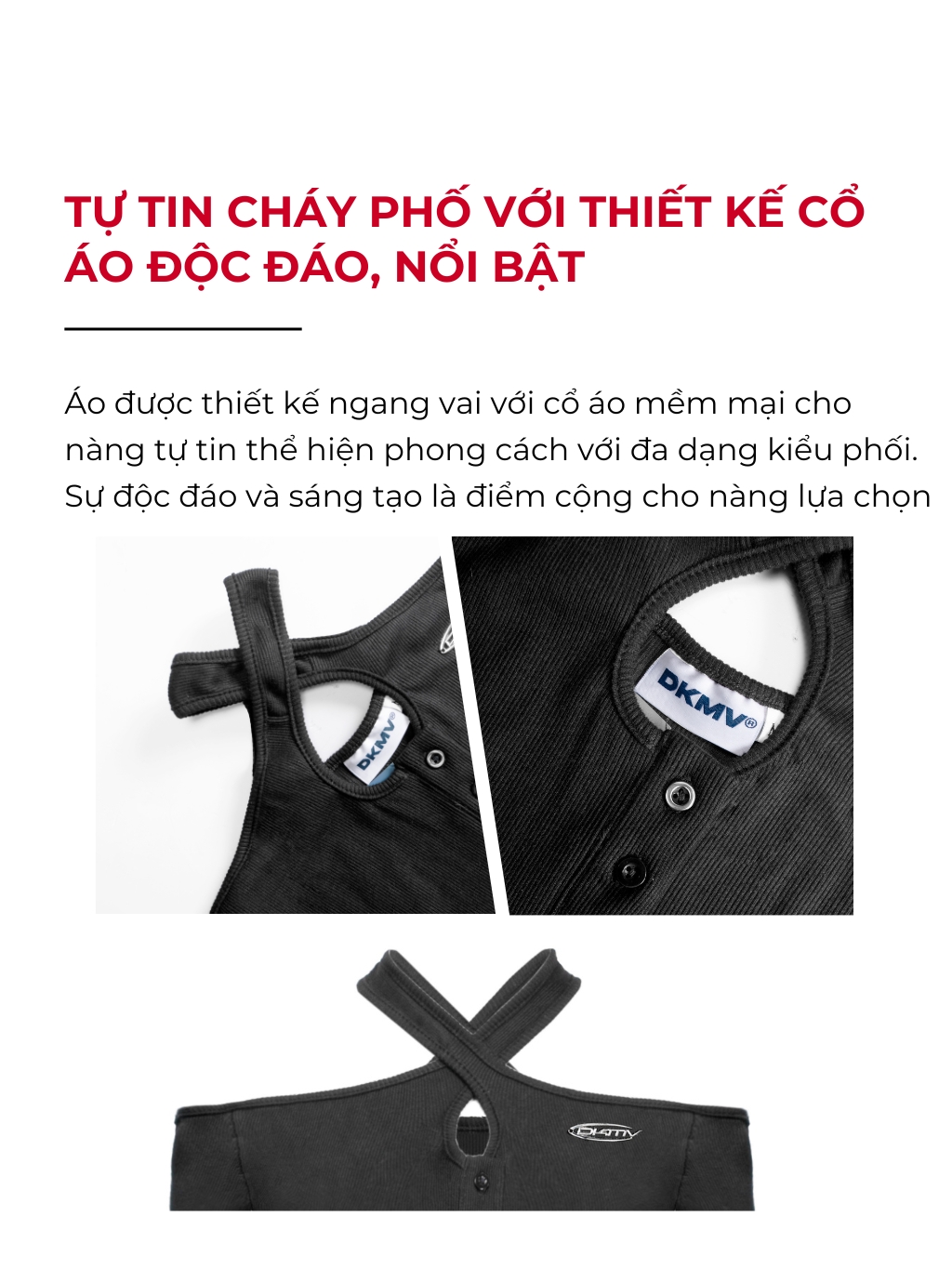Áo local brand thiết kế trễ vai với cổ áo mang đậm phong cách thời trang cá tính, kiêu kỳ đặc trưng của nhà DKMV. Với tag kim loại nổi bật ở ngực áo, đây sẽ là một điểm nhấn nổi bật cho các nàng khi mặc lên người.