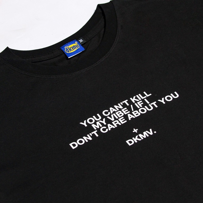 - Thiết kế tối giản nổi bật với thông điệp mới mẻ: "You can't Kill My Vibe. If i Don't Care About You" khẳng định cá tính Gen Z in sắc nét trên nền áo.