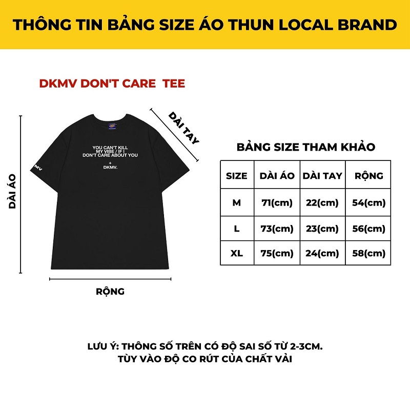 - Điều gì khiến bạn phải lo ngại những phán xét từ bên ngoài khi họ chẳng là mối bận tâm của bạn, sự tốt đẹp và niềm vui chỉ dành cho những người bạn yêu thương và quan tâm. Chính là thông điệp Don't care Tee cùng đội ngũ DKMV muốn gửi đến bạn sở hữu item.