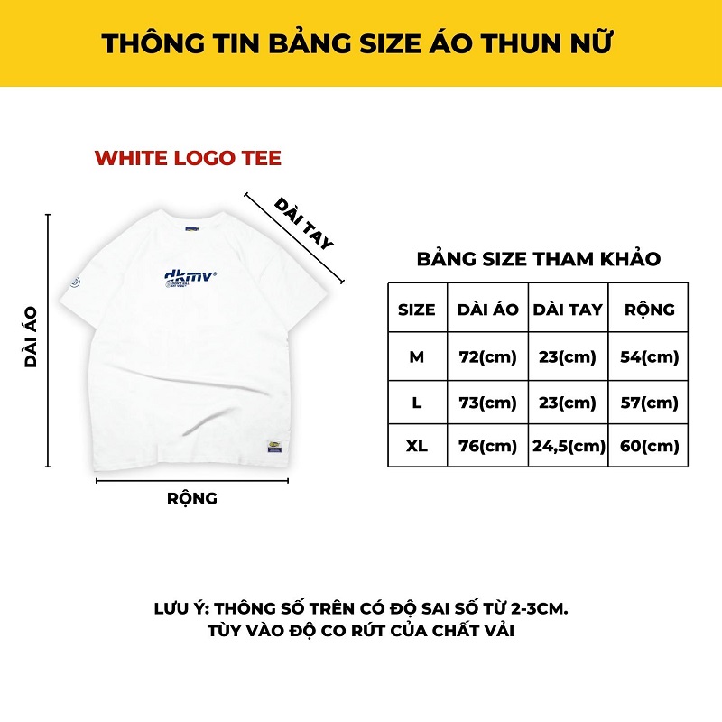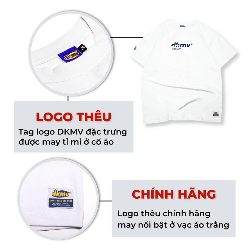 - Vải thun cotton 4 chiều dày mịn nhưng thông thoáng, rất phù hợp với những ngày nắng nhiệt độ cao. Kết hợp cùng màu trắng tươi sáng, mát mẻ, DKMV Tee Logo - White trở thành món đồ không thể thiếu trong top best seller.