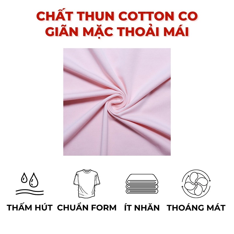 - Chất liệu: Vải cotton 4 chiều dày mịn giúp người mặc cảm giác tự tin, thoải mái nhờ lên form chuẩn. Hơn thế, áo thun nữ giá tốt nhất nhà DKMV còn được lựa chọn nhờ có khả năng thấm hút mồ hôi.