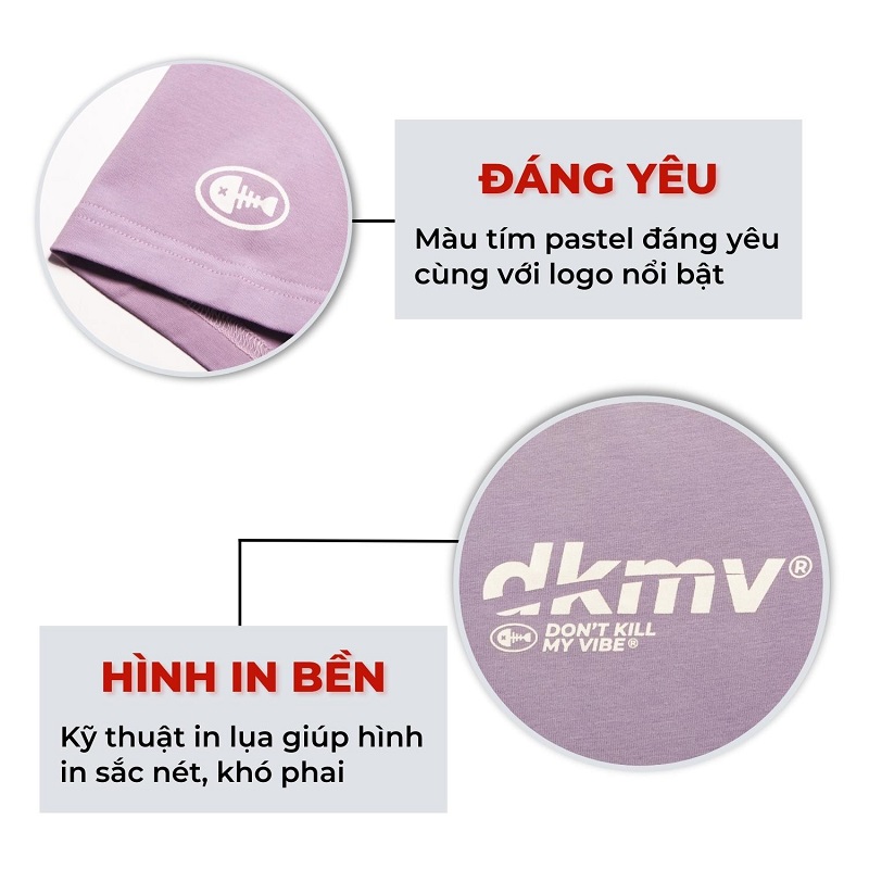 - Màu tím trendy xuất hiện trong thiết kế áo thun nữ tay lỡ form rộng chất lượng nhà DKMV. Các nàng nhẹ nhàng giờ đã có thể lựa chọn gam màu đáng yêu trên form áo oversize cá tính.