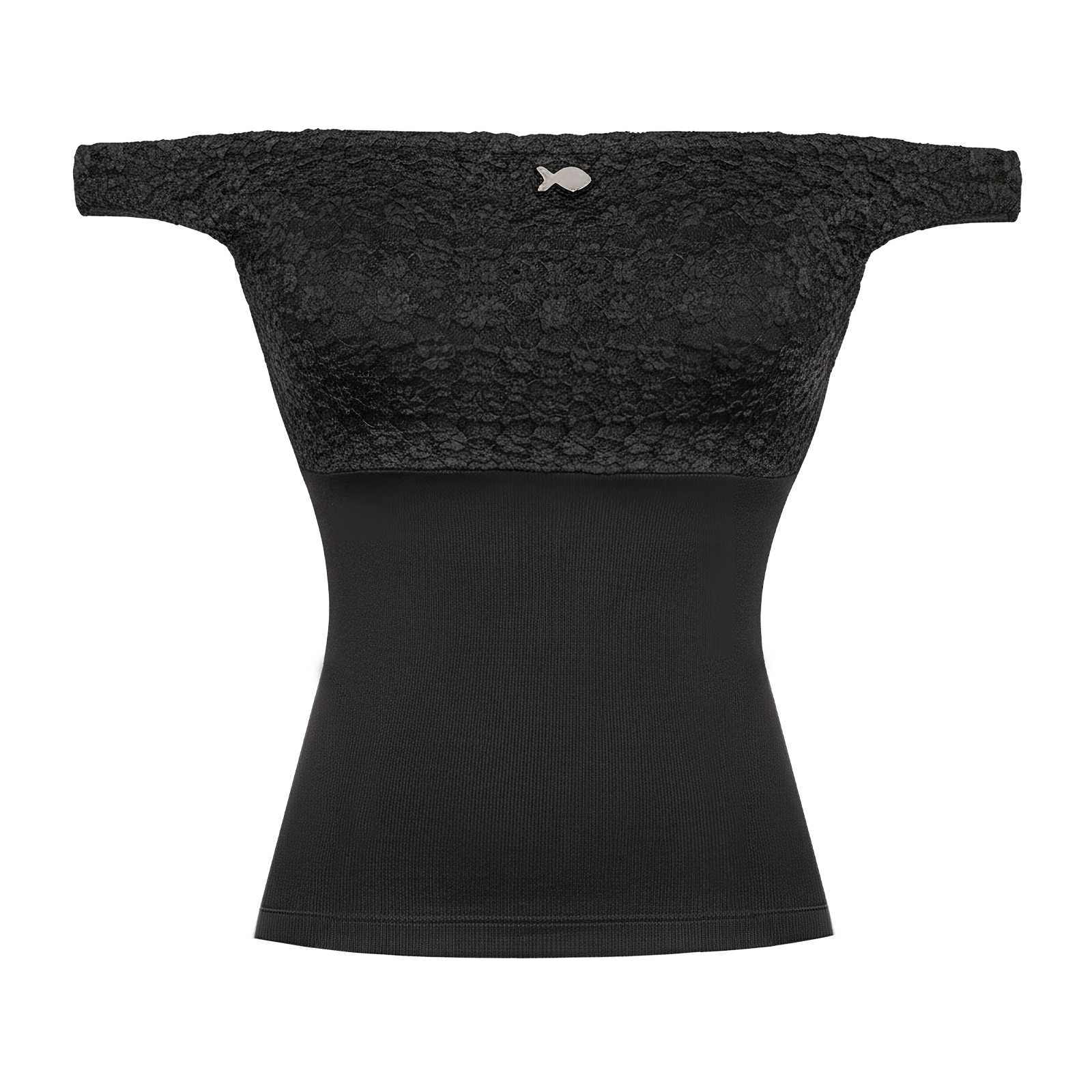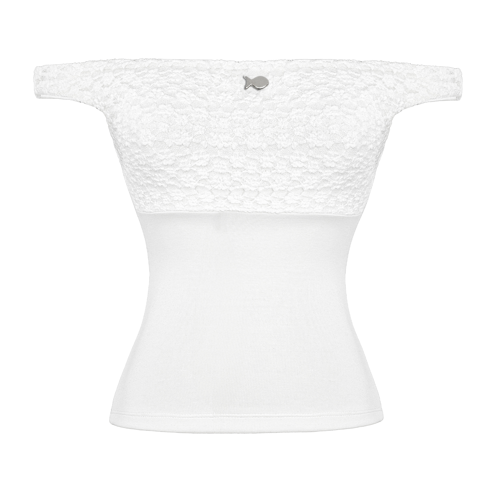 Dodo Top nổi bật với kiểu dáng trễ vai nhẹ nhàng, tinh nghịch khoe bờ vai mảnh dẻ. Điều tạo nên sự lãng mạn chính là chi tiết phối ren hoa cúc, xếp đặt khéo léo, mang đến vẻ ngoài thanh khiết và điệu đà.