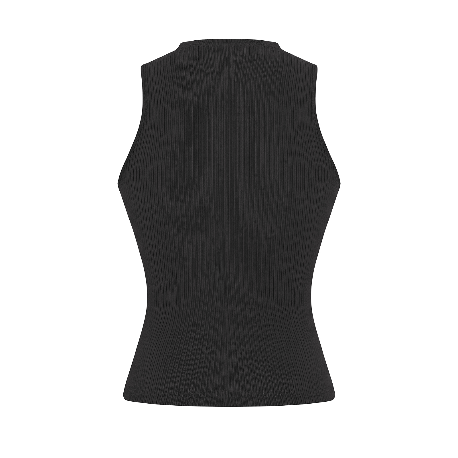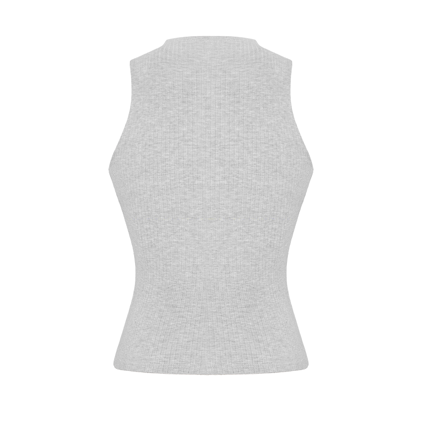 Chiếc áo ba lỗ dáng dài này nổi bật với thiết kế cổ cao tinh tế, ôm nhẹ lấy phần cổ, tạo phong thái kiêu kỳ và nhã nhặn.