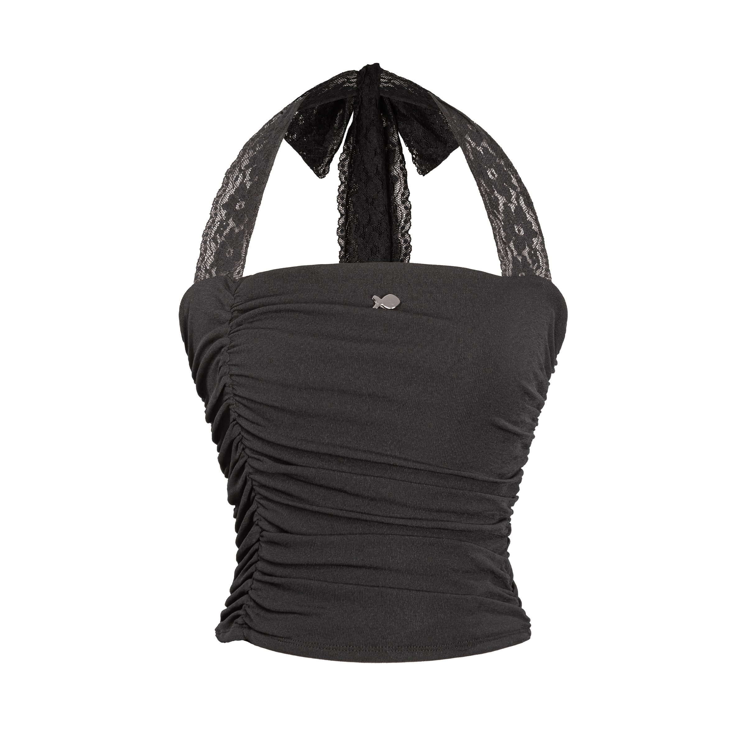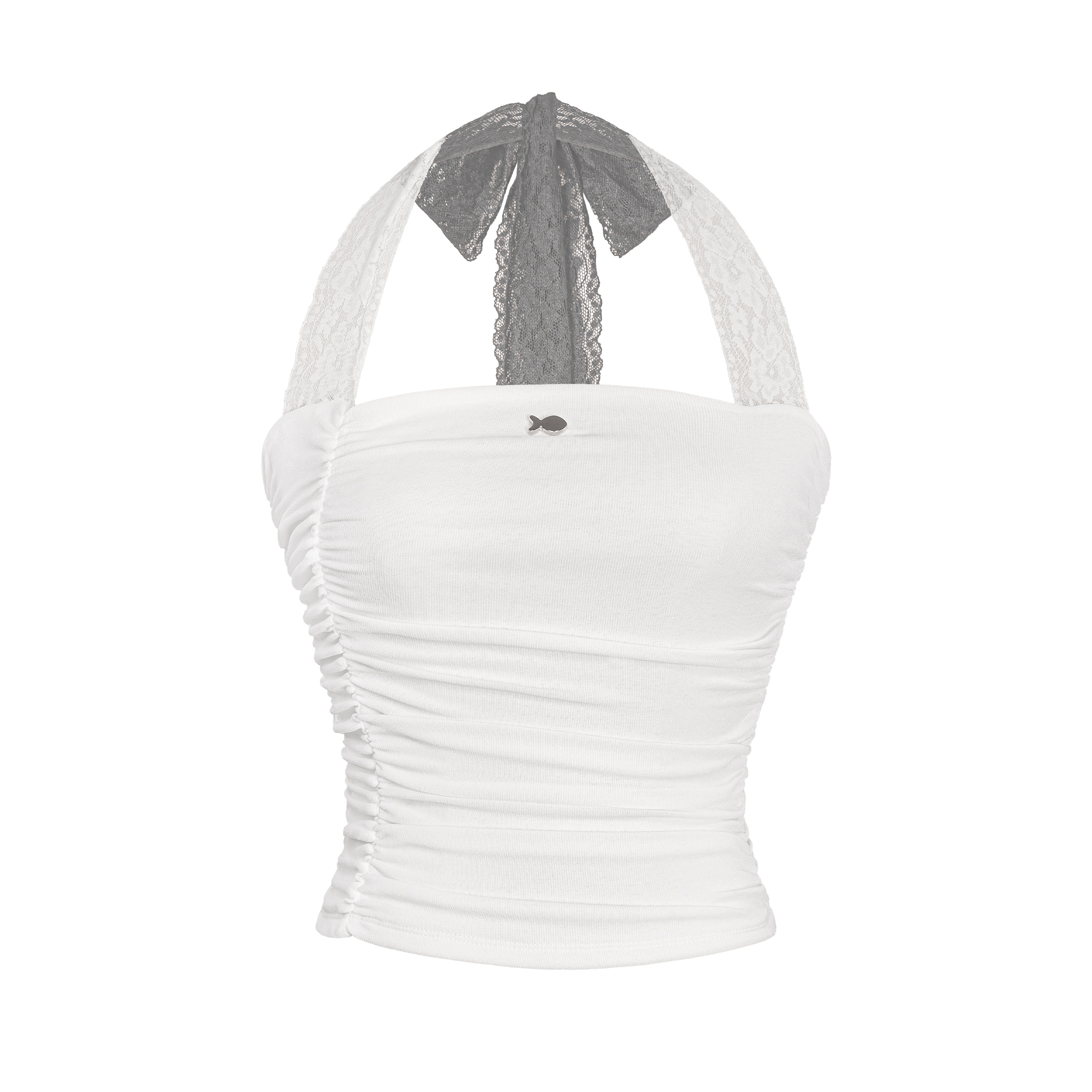 Tahlia Top được thiết kế với kiểu cổ yếm thanh thoát, chi tiết nhún bèo mềm mại kết hợp cùng dây cột phối ren tinh tế tạo điểm nhấn ngọt ngào, điệu đà, khiến bé trông như một đóa hoa nhỏ đang hé nở.