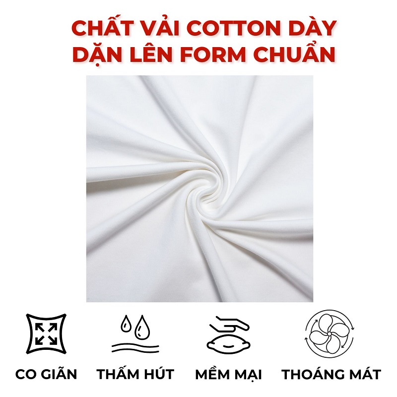 - Chất liệu: Thun cotton co dãn 4 chiều thoải mái, tính năng thấm hút mồ hơi tốt, tạo cảm giác thoải mái cho người mặc.