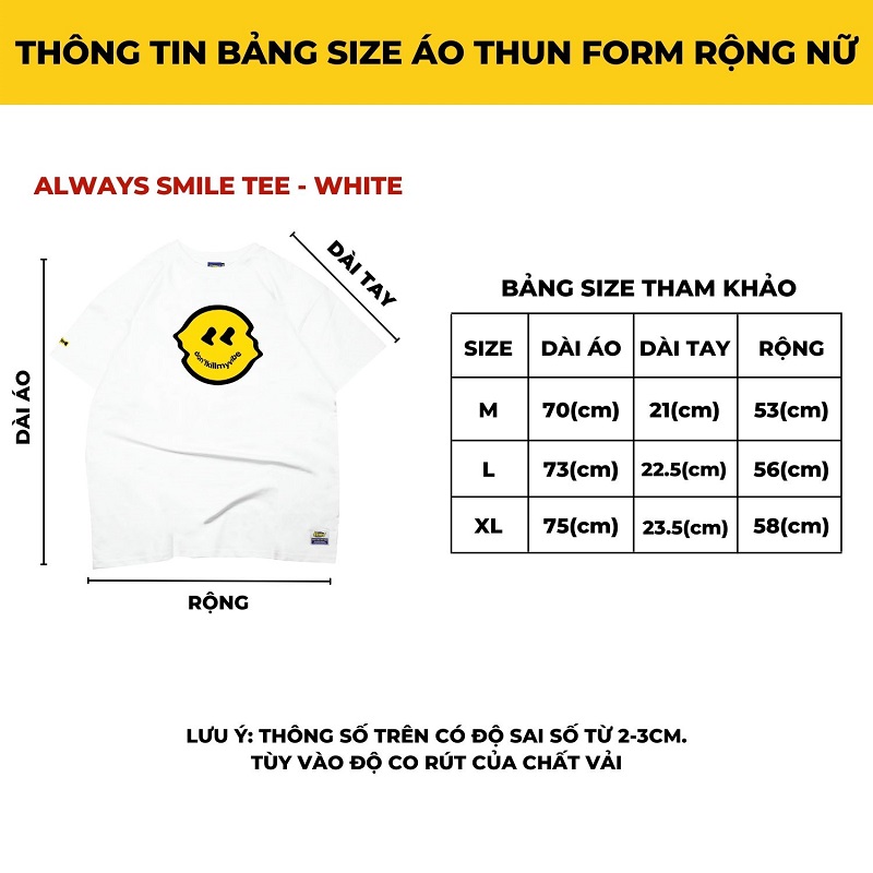 Chính sách của hãng đối với áo thun nữ form rộng tay lỡ màu trắng DKMV Always Smile Tee