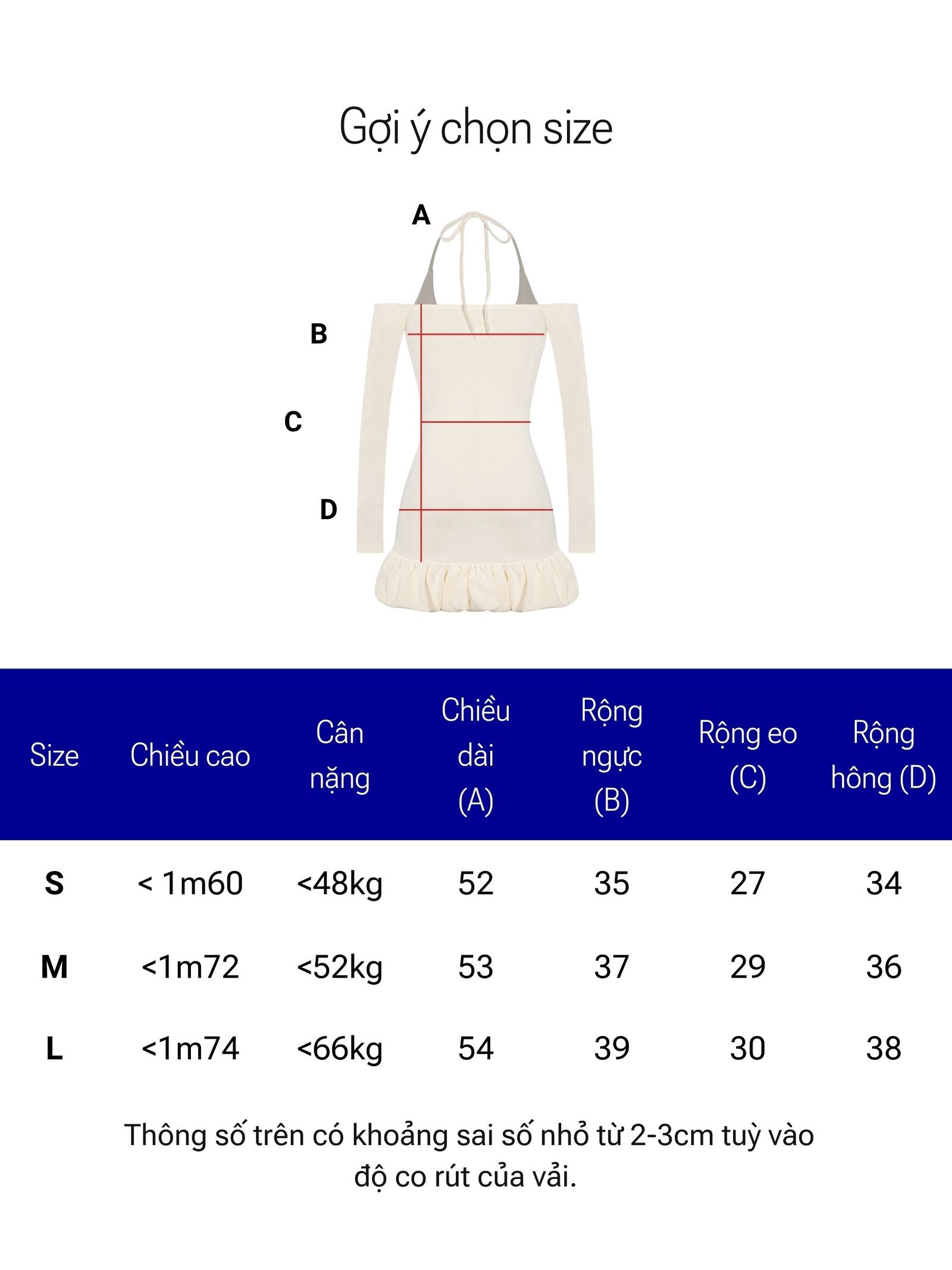 Size | Rộng ngực | Rộng eo | Rộng hông | Dài váy |