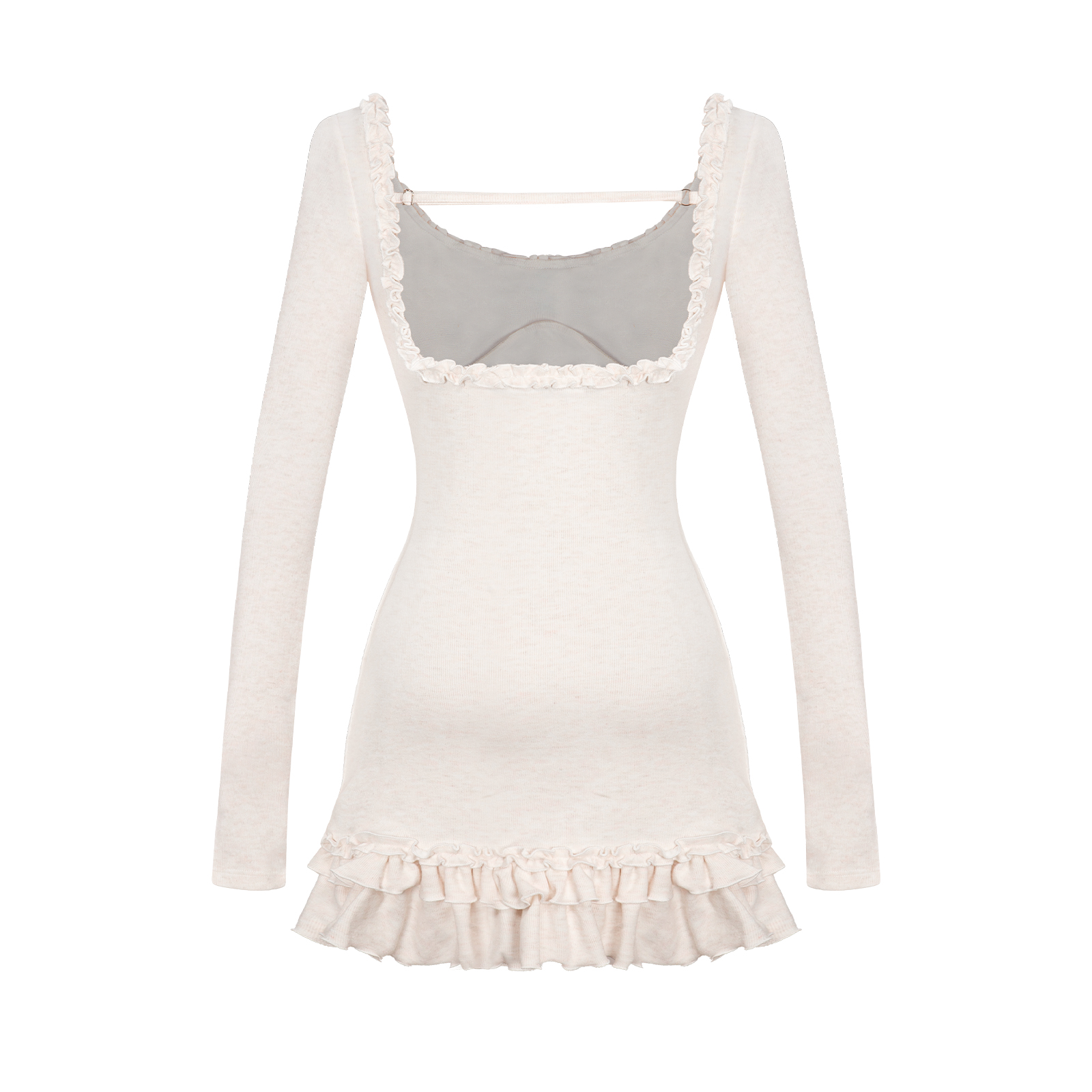 Đặc biệt, chi tiết hở lưng tinh tế tạo điểm nhấn e ấp và lãng mạn bất ngờ ở phía sau. Đầm được may từ chất liệu thun rib muối tiêu mềm mại, co giãn, mang lại cảm giác thoải mái dễ chịu. Cuối cùng, đính logo cá nhỏ nhắn được thêm vào, tăng thêm nét tinh nghịch và ngọt ngào.