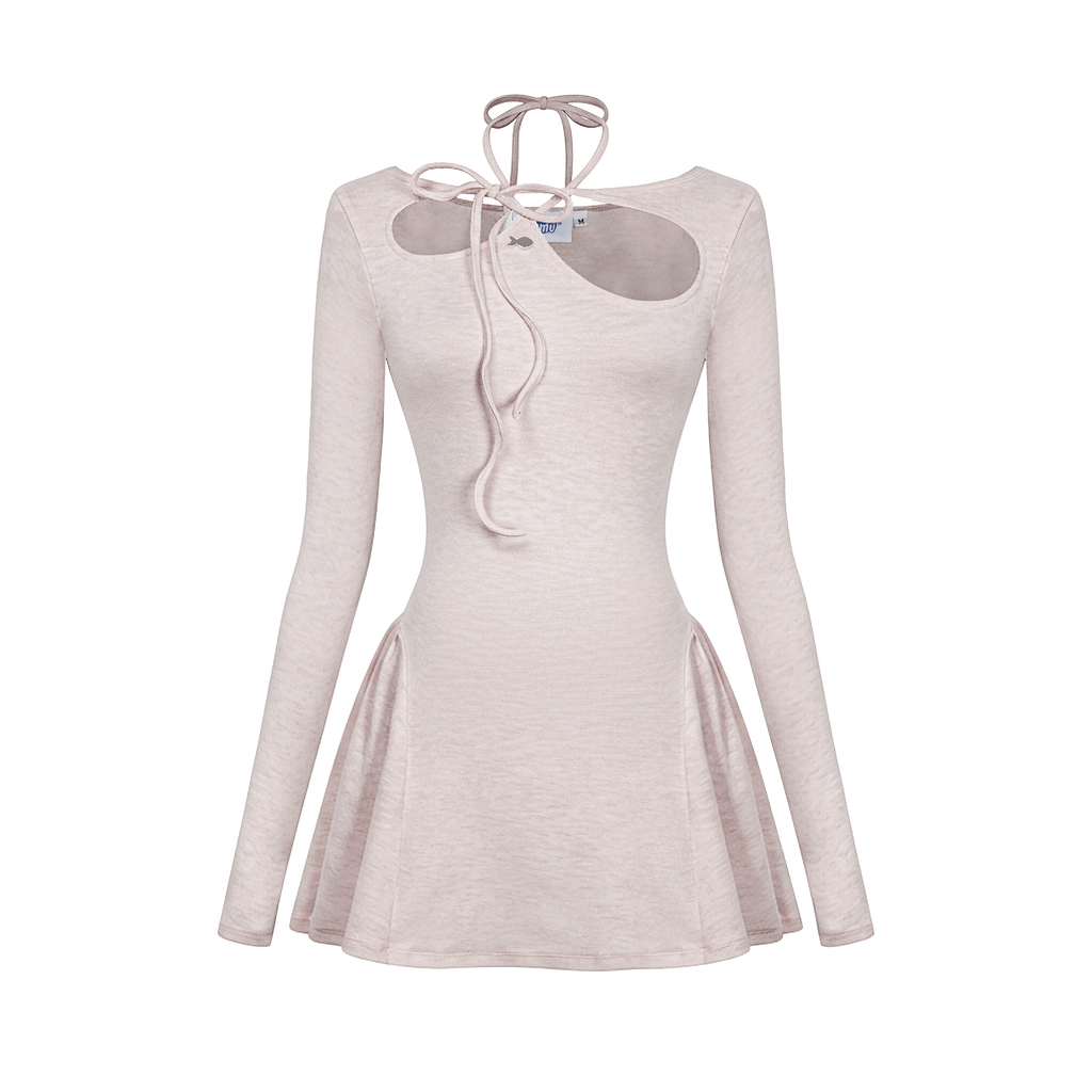 Thiết kế tay dài thanh mảnh trên nền chất liệu thun rib ôm dáng nhẹ nhàng ôm lấy vóc dáng, kết hợp cùng dáng váy xòe ngắn bồng bềnh tạo nên một tổng thể vô cùng xinh yêu và đáng yêu.