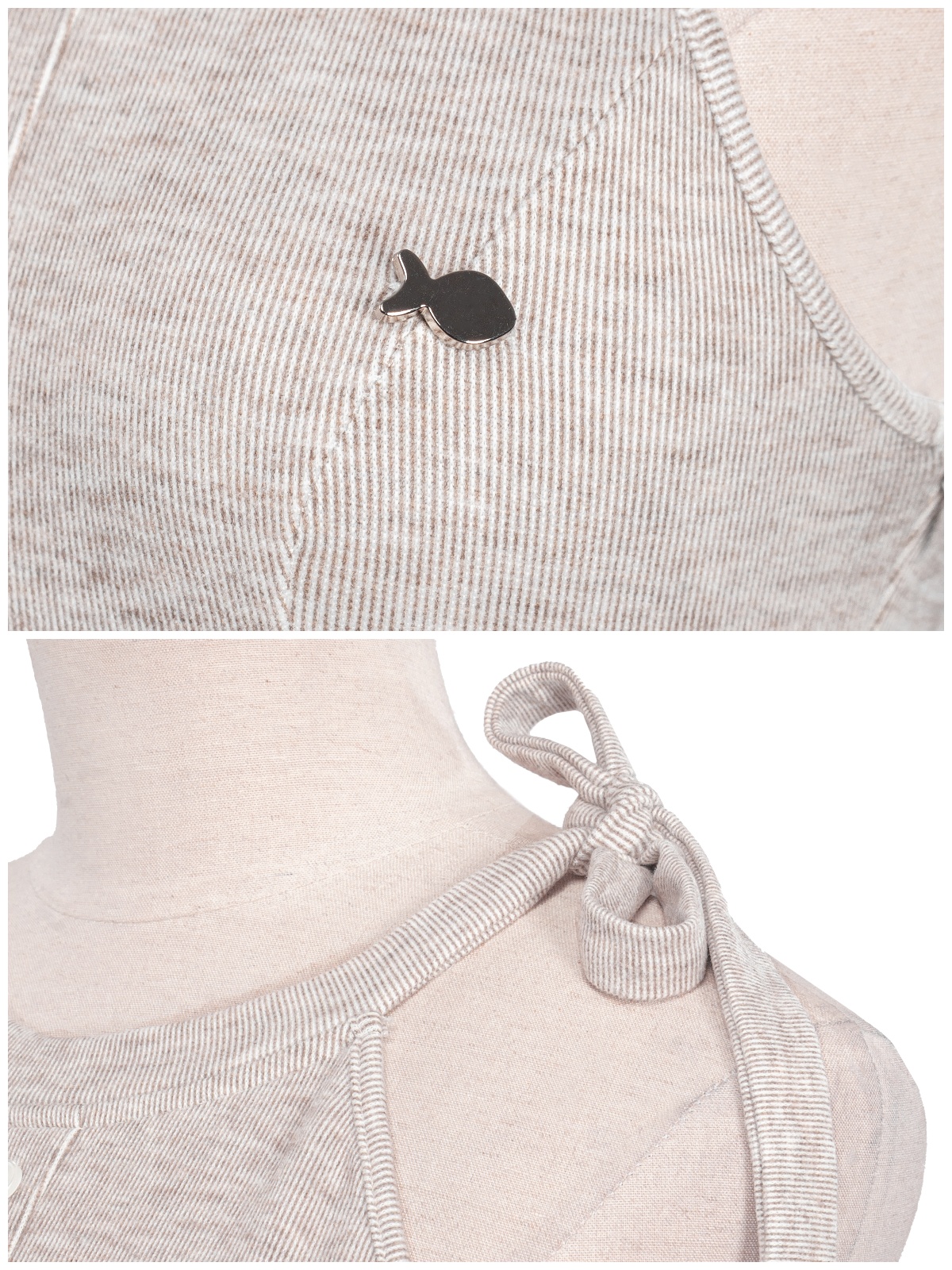 Thiết kế cổ yếm với phần dây cổ buộc nơ bản lớn tạo nên một vẻ đẹp điệu đà, giúp bé khoe khéo bờ vai trần thanh thoát đầy e ấp.