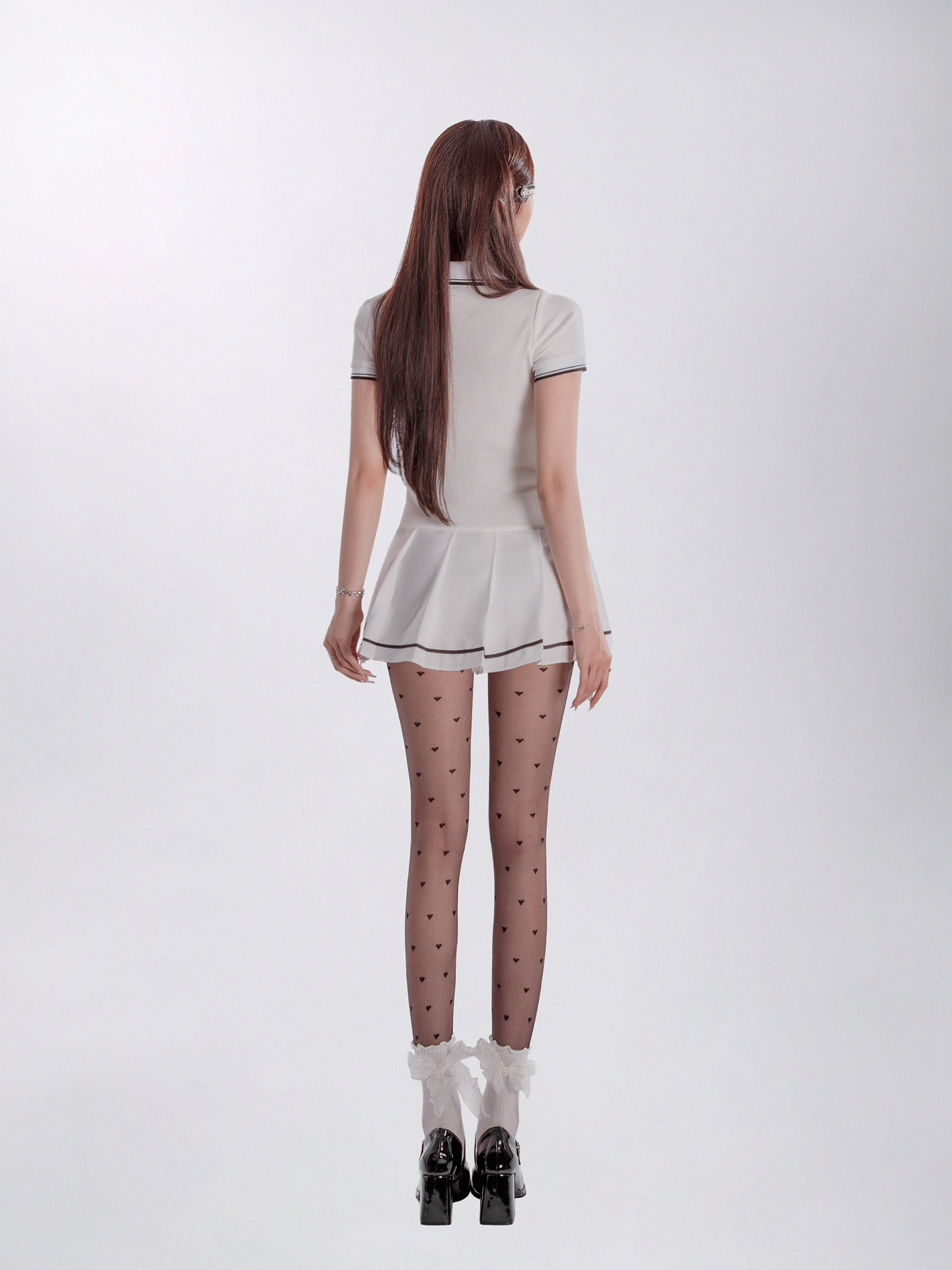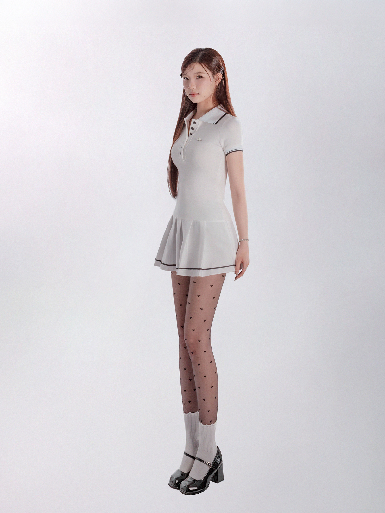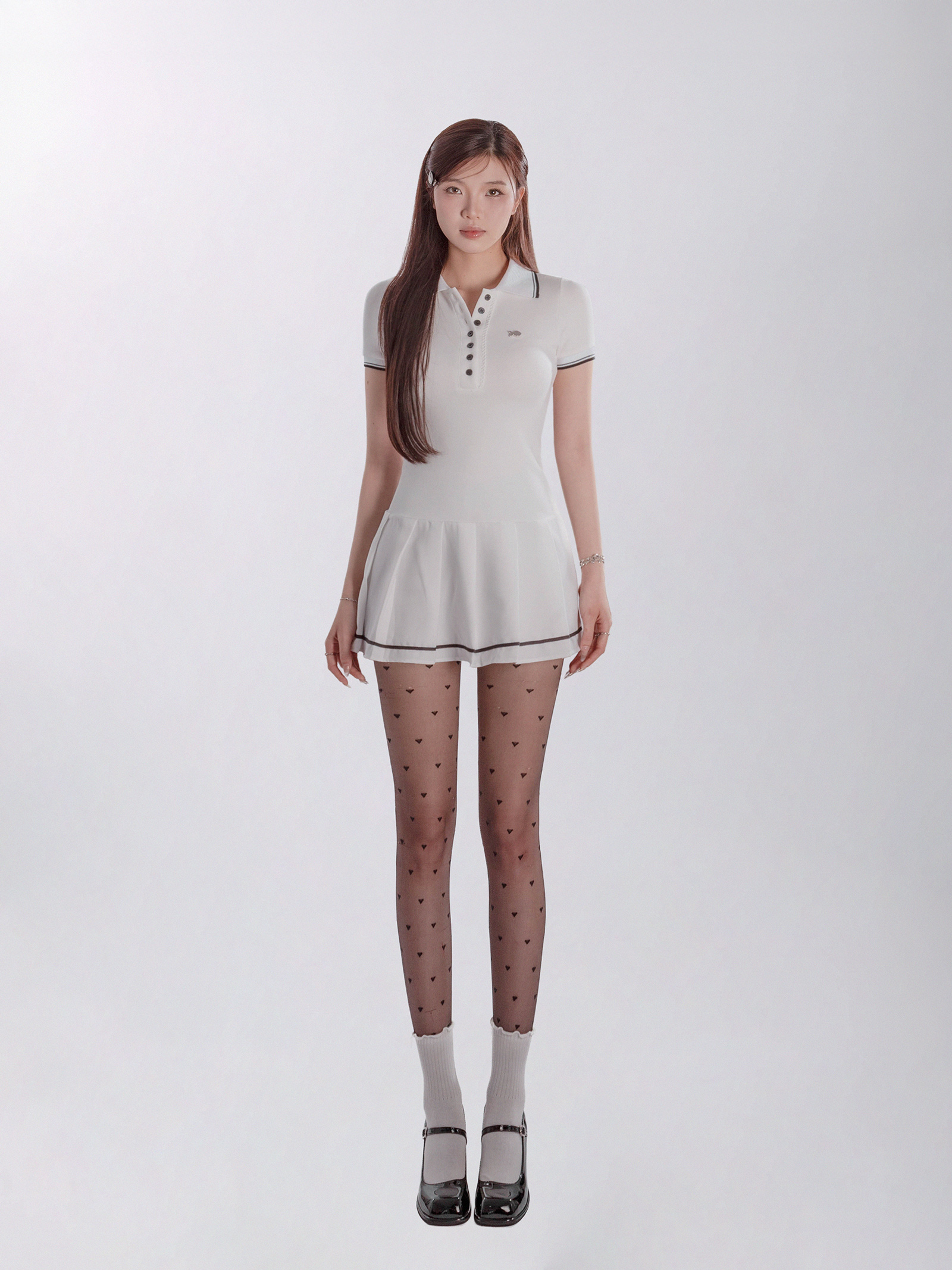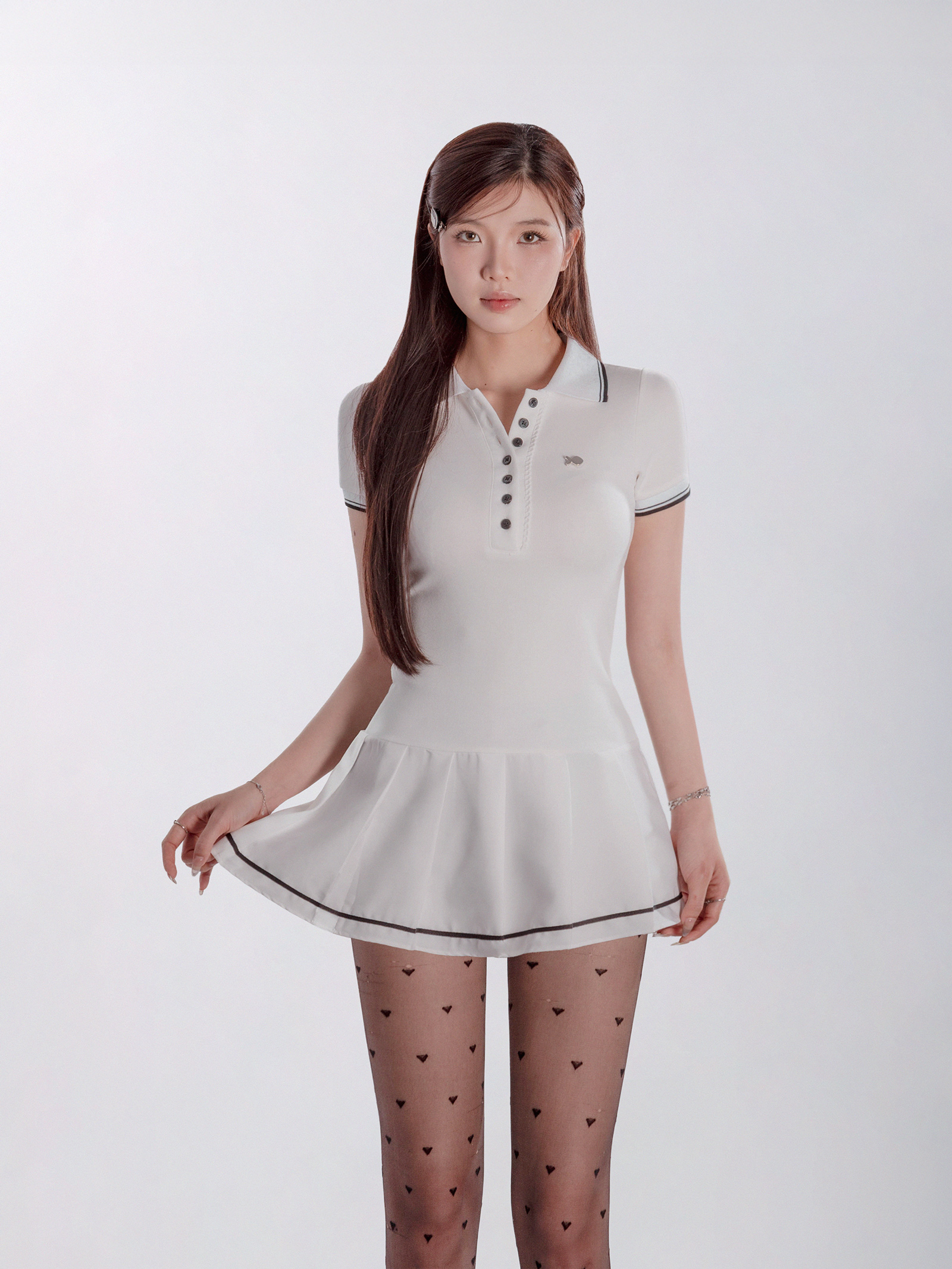 Đầm được thiết kế với cổ polo thanh lịch, kết hợp cùng dáng váy xếp ly uyển chuyển, tạo hiệu ứng bồng bềnh và duyên dáng theo mỗi bước đi của bé. Điểm nhấn độc đáo của chiếc đầm là thiết kế phối viền tương phản, tạo nên sự phá cách nhưng vẫn giữ trọn nét tinh tế.