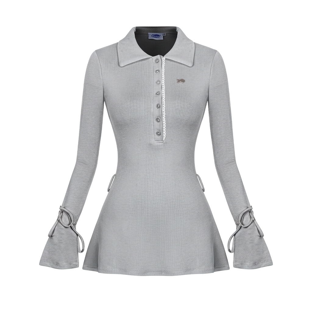 Điểm nhấn làm nên sự kiêu kỳ đặc biệt chính là thiết kế tay dài loe nhẹ nhàng, mang lại nét e ấp và thanh thoát cho đôi tay của bé. Dải ren đính dọc hàng nút tinh tế chính là nét chấm phá điệu đà, khiến chiếc đầm trở nên xinh yêu và khác biệt.