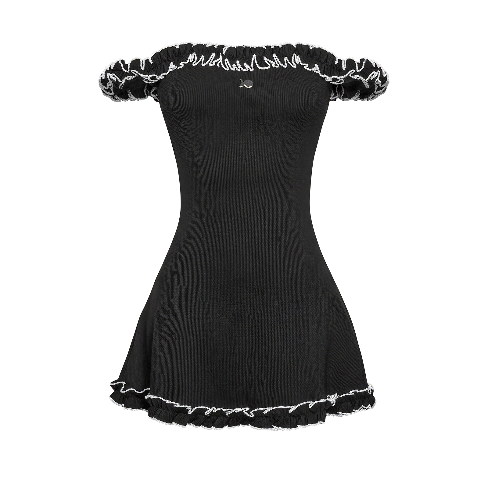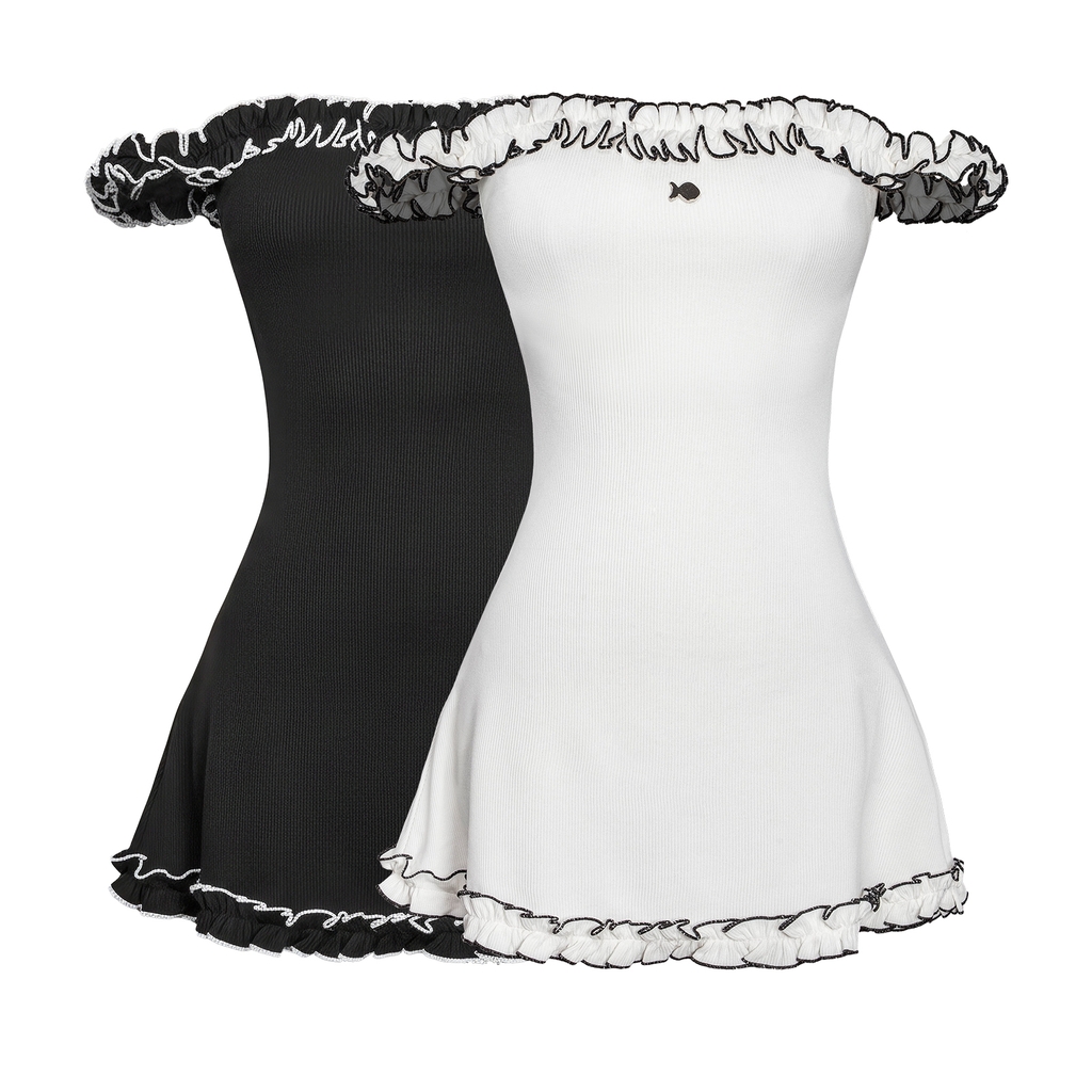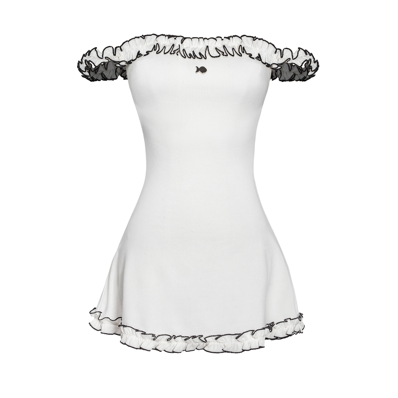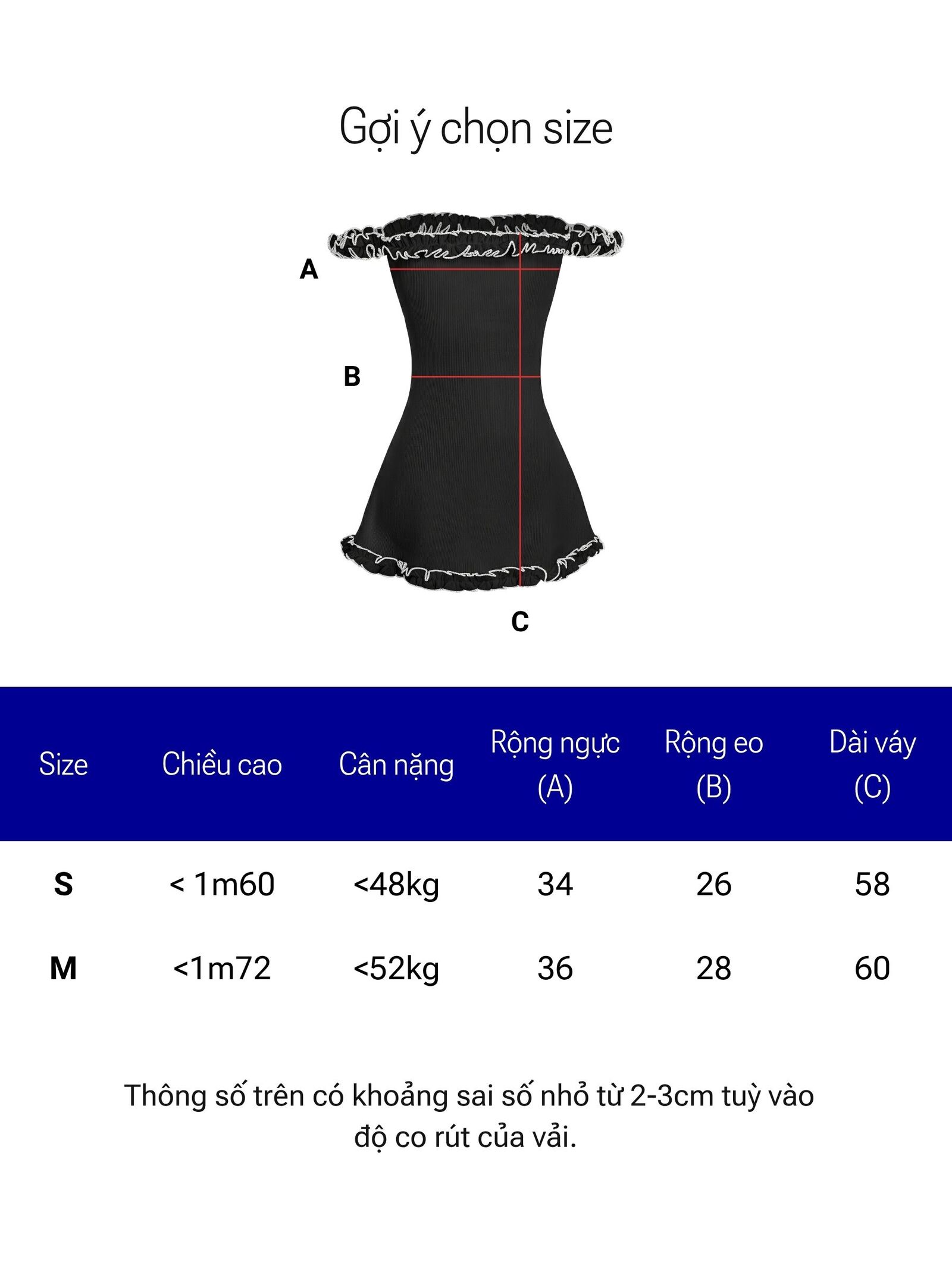 Da Eun Dress sở hữu kiểu dáng trễ vai đáng yêu, nhẹ nhàng khoe bờ vai xinh xắn. Điểm nhấn chính là chi tiết phối bèo nhún mềm mại cùng phần viền tương phản được thiết kế tinh nghịch, tạo điểm nhấn nổi bật và điệu đà.