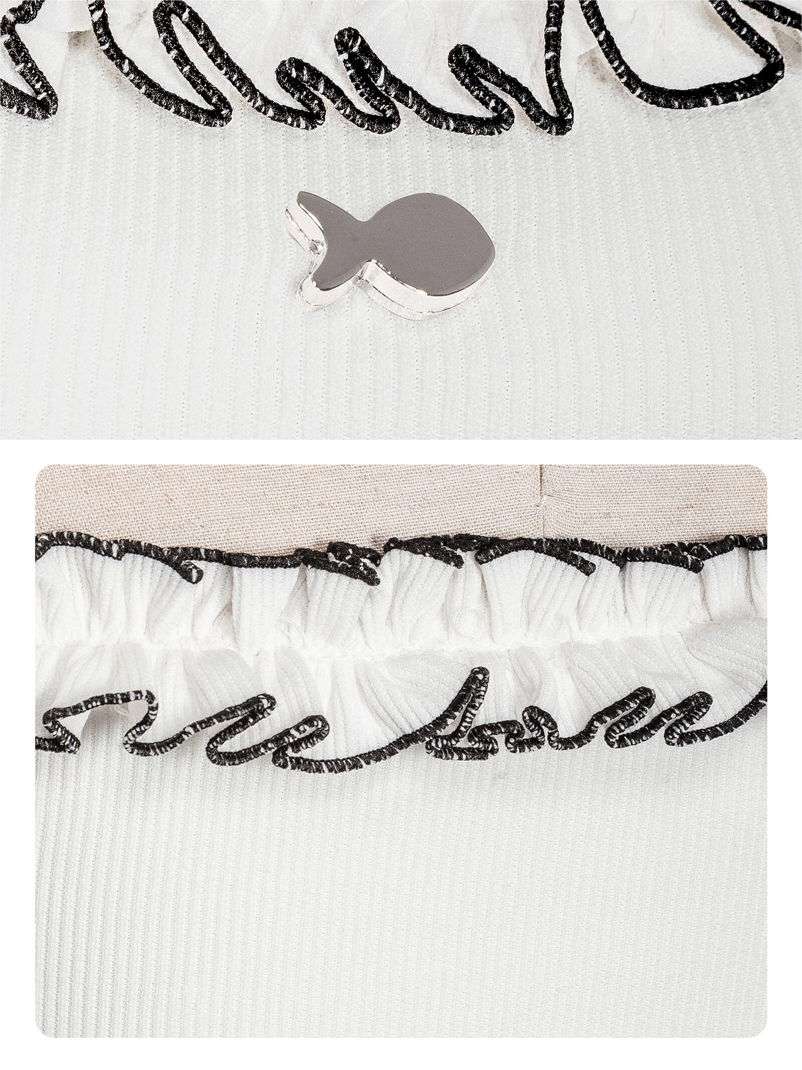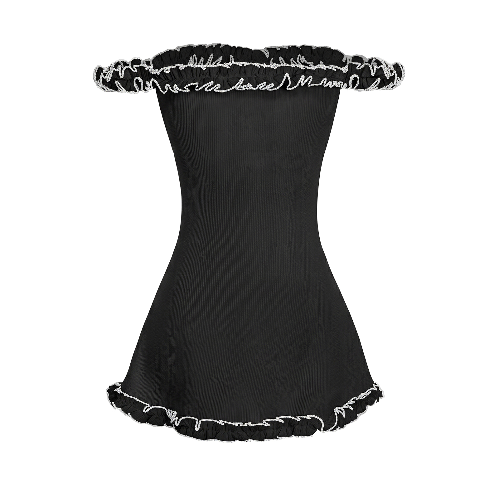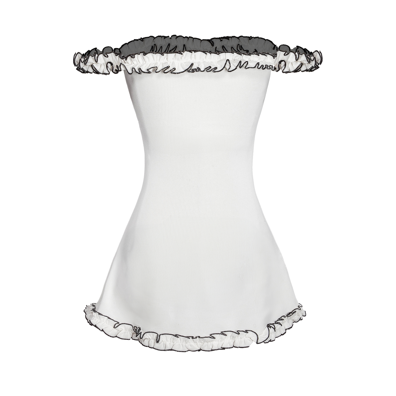 Da Eun Dress sở hữu kiểu dáng trễ vai đáng yêu, nhẹ nhàng khoe bờ vai xinh xắn. Điểm nhấn chính là chi tiết phối bèo nhún mềm mại cùng phần viền tương phản được thiết kế tinh nghịch, tạo điểm nhấn nổi bật và điệu đà.