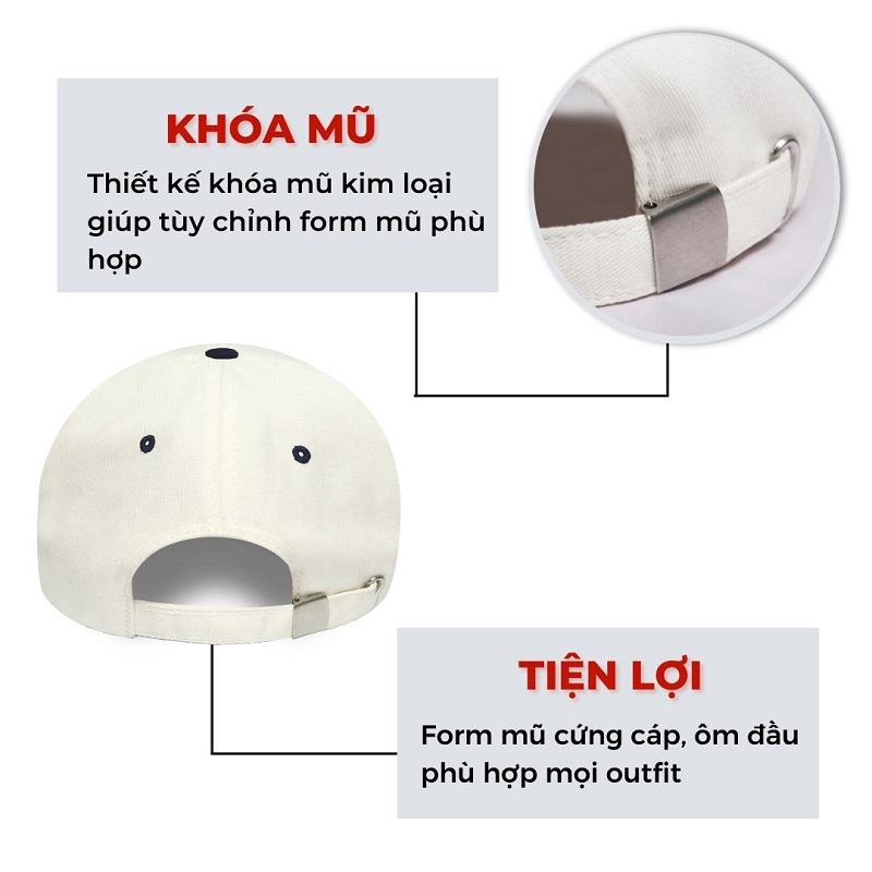 - Thiết kế cá tính với khuy khóa kim loại ở phía sau, giúp người sử dụng thoải mái điều chỉnh kích thước phù hợp.
