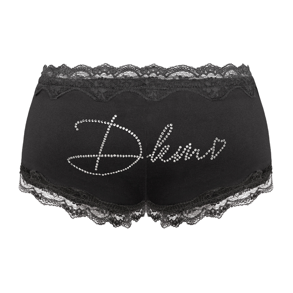 Sự kiêu kỳ còn được thể hiện qua họa tiết đính cườm nhỏ nhắn, lấp lánh xinh yêu trên thân quần, mang lại vẻ ngoài đáng yêu ngay cả khi không lộ ra ngoài. Chi tiết đính logo cá inox nhỏ nhắn hoàn thiện dấu ấn thương hiệu DKMV một cách tinh nghịch.