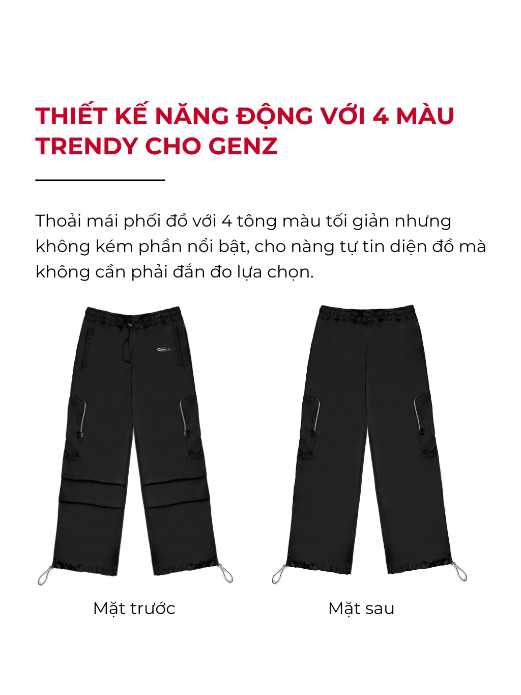 - Thiết kế lưng thun kết hợp dây rút tiện lợi