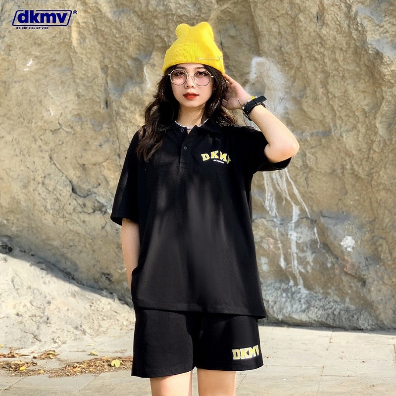 Đáng yêu khi diện nguyen set Academy gồm áo thun polo form rộng và quần short nữ lưng thun màu đen