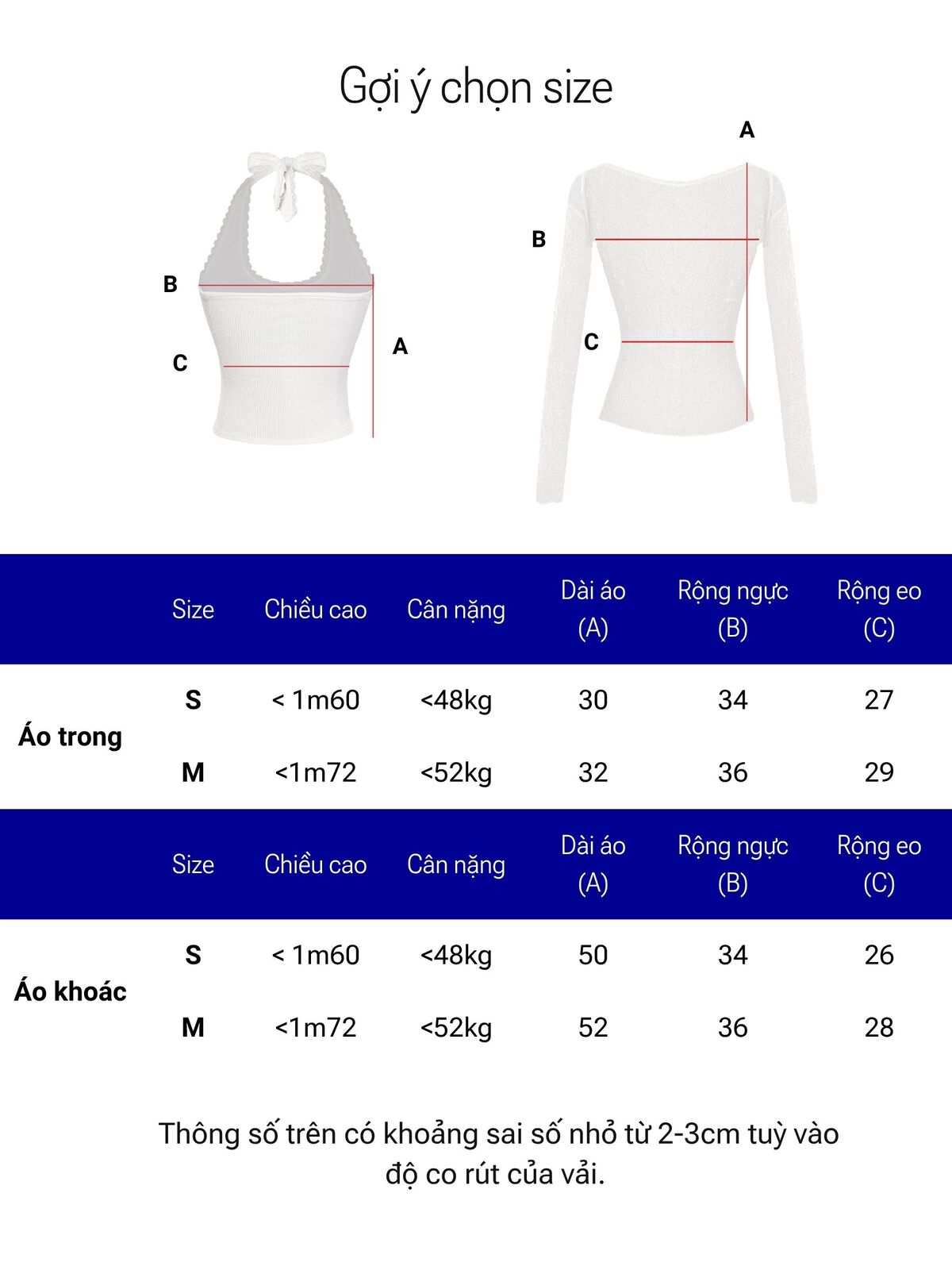 Áo yếm | Size | Rộng ngực | Rộng eo | Dài áo |