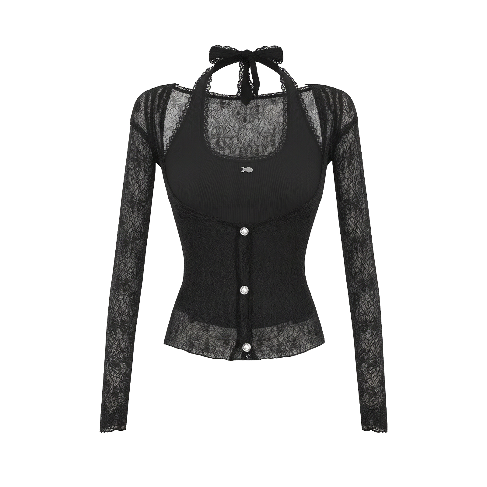 Sản phẩm được làm từ chất liệu thun gân ruby phối ren và khoác ren mỏng nhẹ, có độ ôm dáng vừa phải, mang lại cảm giác thoải mái tối đa, tạo nên một giao diện e ấp, cuốn hút.