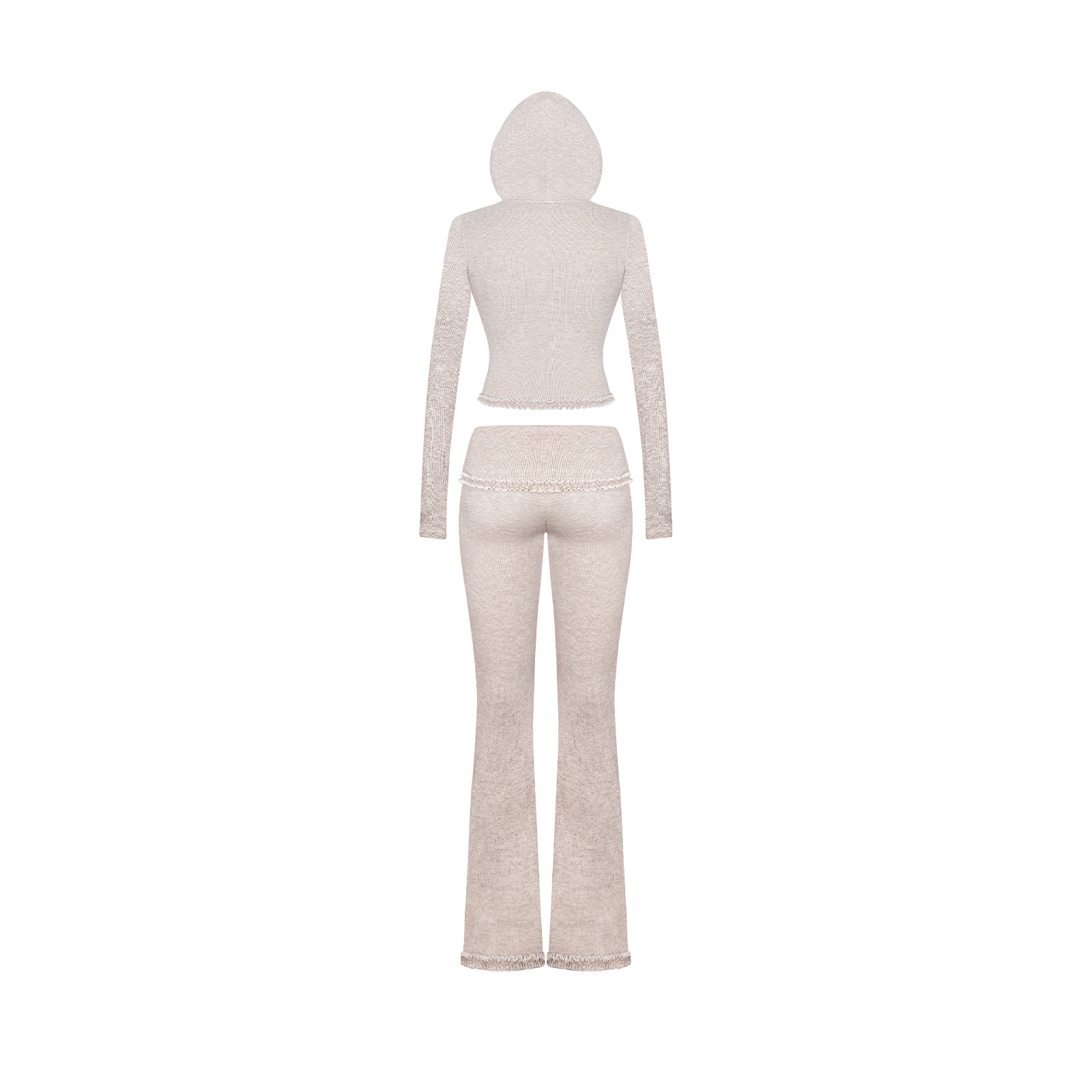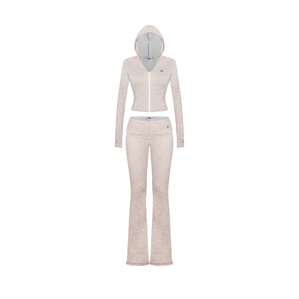 Nét điệu đà của set đồ được tôn lên nhờ chiếc quần ống loe cạp thấp hiện đại, khéo léo làm nổi bật vóc dáng duyên dáng của bé. Đặc biệt, hoạ tiết phối bèo lưng lật mềm mại tạo nên một điểm nhấn lãng mạn và nữ tính.