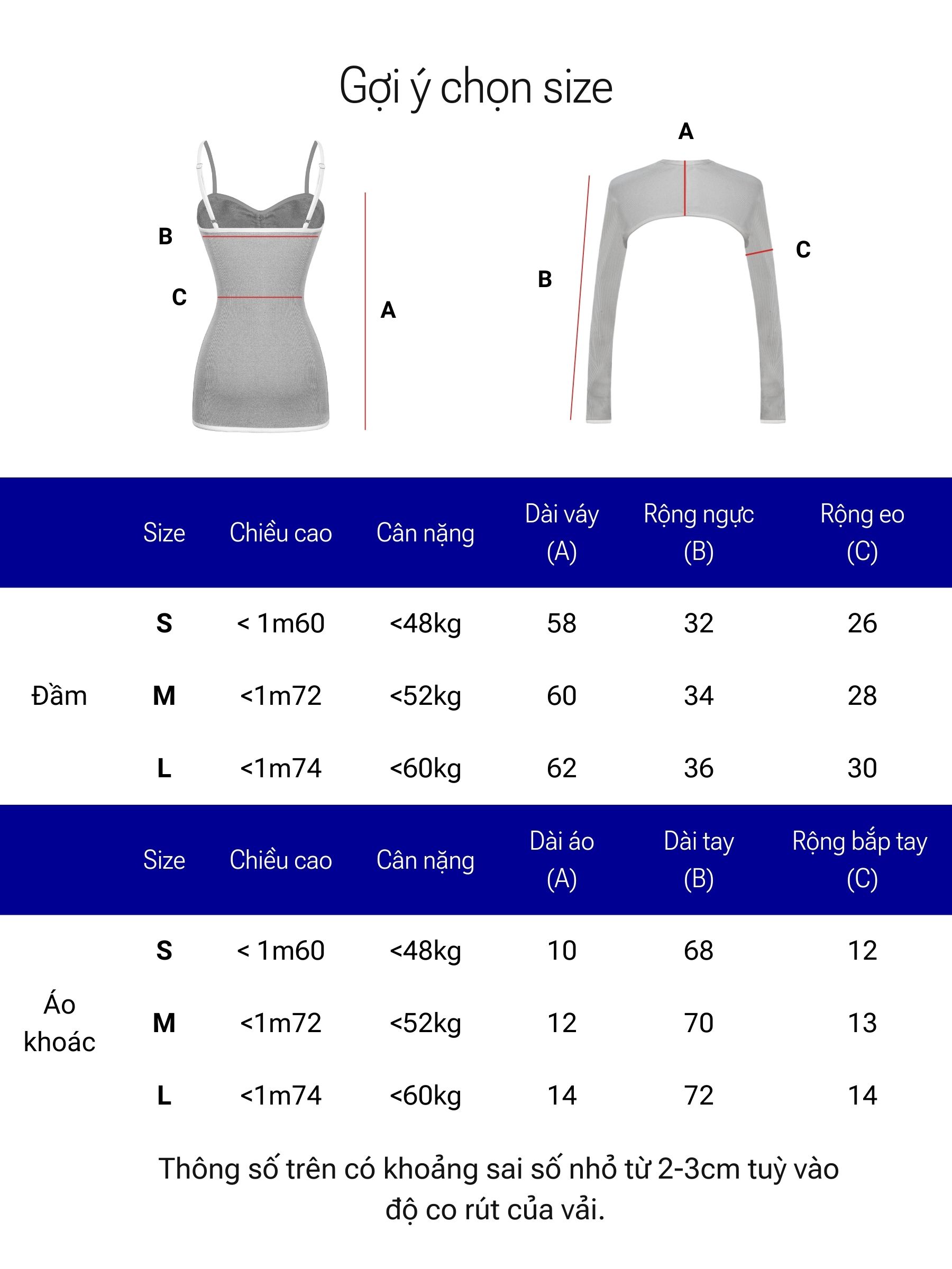Đầm | Size | Dài đầm | Rộng ngực | Rộng eo |