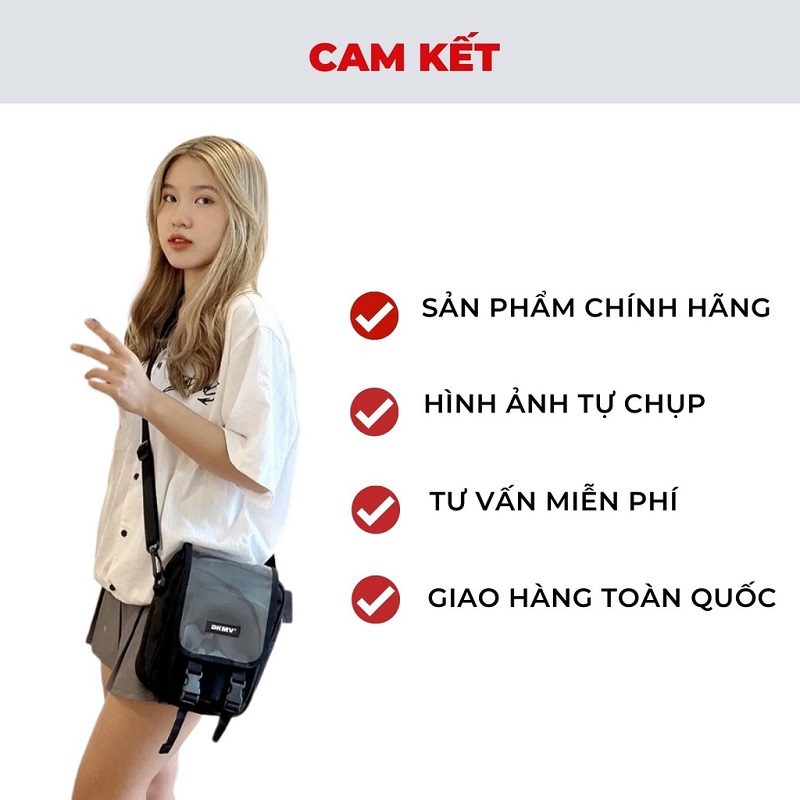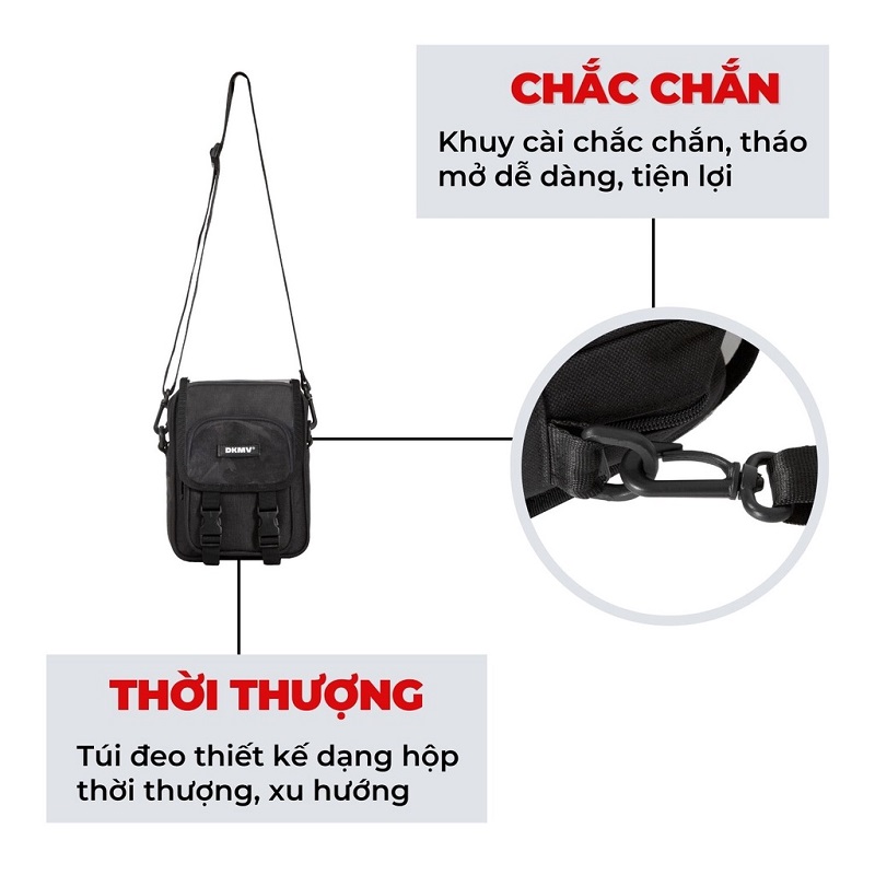 - Logo Rubber Tag DKMV được in nổi trên nền túi đeo chéo canvas đặc trưng. Điểm nhấn ấn tượng cho sản phẩm.