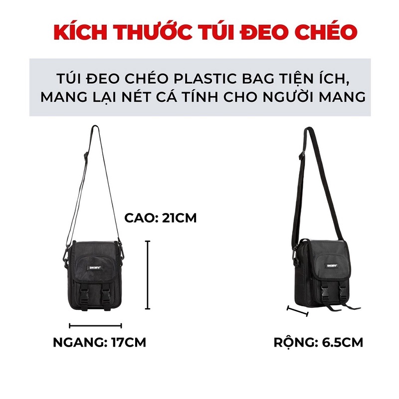 - Túi đeo chéo nữ canvas mini có thiết kế Platic trẻ trung, năng động phù hợp với nhiều outfits phong cách đa dạng streetwear cho cả nam và nữ.
