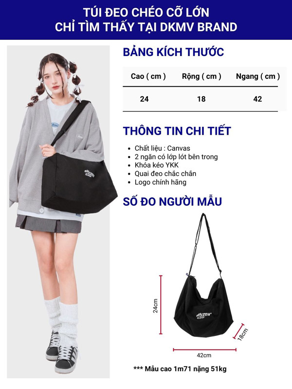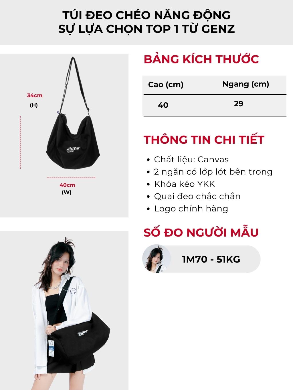 - Túi đeo chéo canvas cỡ lớn thời trang xu hướng streetwear phù hợp với nhiều outfits phong cách đa dạng cho cả nam và nữ, bạn có thể phối đi học hay đi dạo phố đều được.