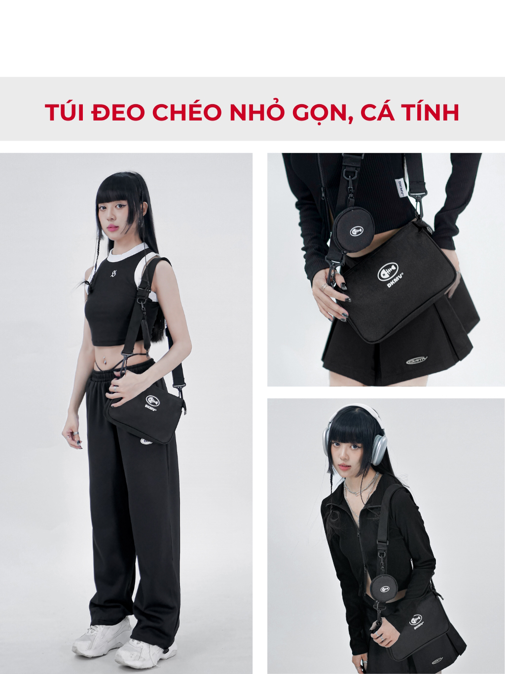 - Túi đeo chéo Local Brand cực cá tính và tiện ích khi phối cùng áo Basic Croptop và quần short Jean rách