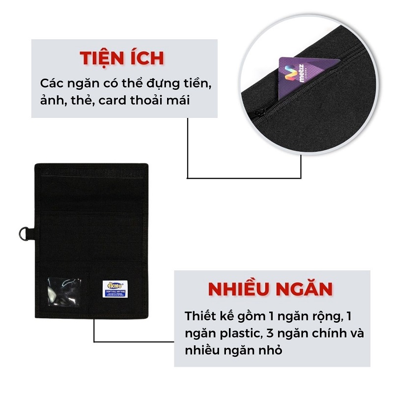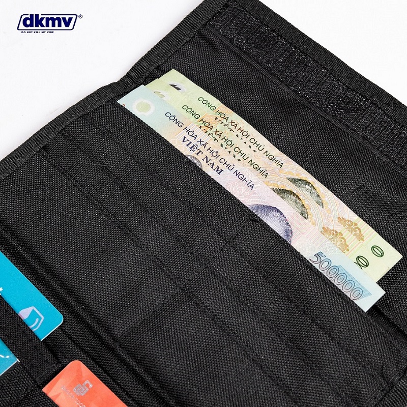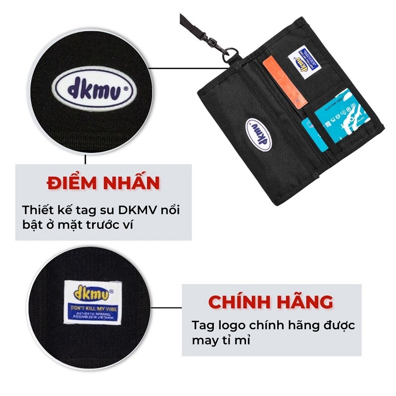 - Điểm nhấn của mẫu ví cầm tay này là logo DKMV làm bằng su nổi bật.
